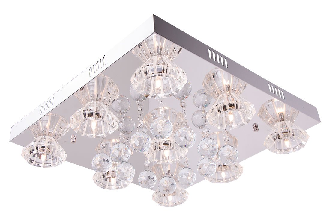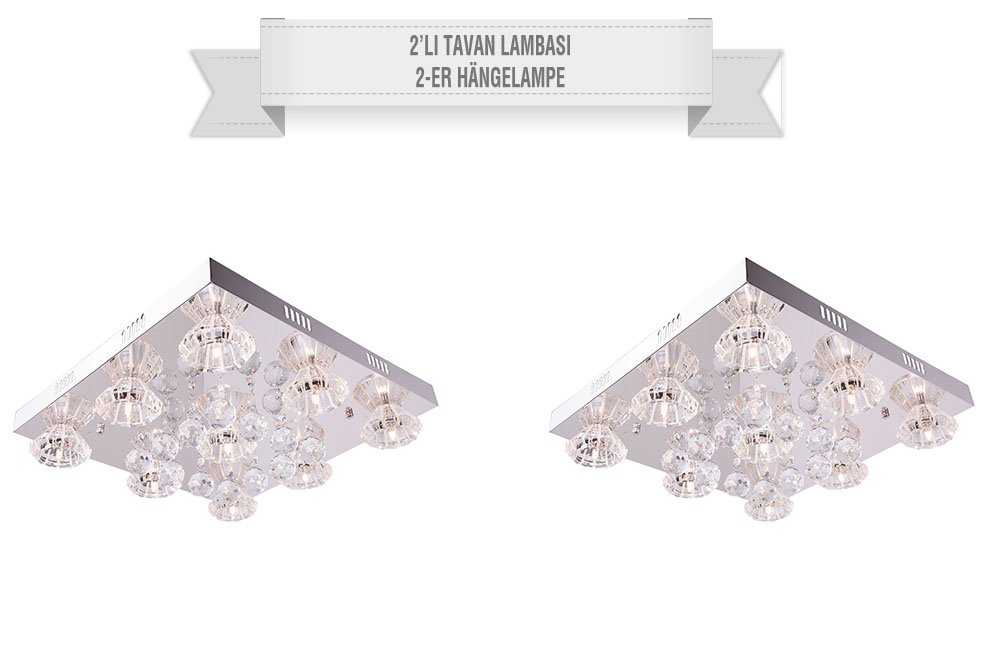 Teslimat ve Boyutlar: 1 x Dekonaz Avize Tavan Lambası | 2 Adet | 47x47cm | Kristal