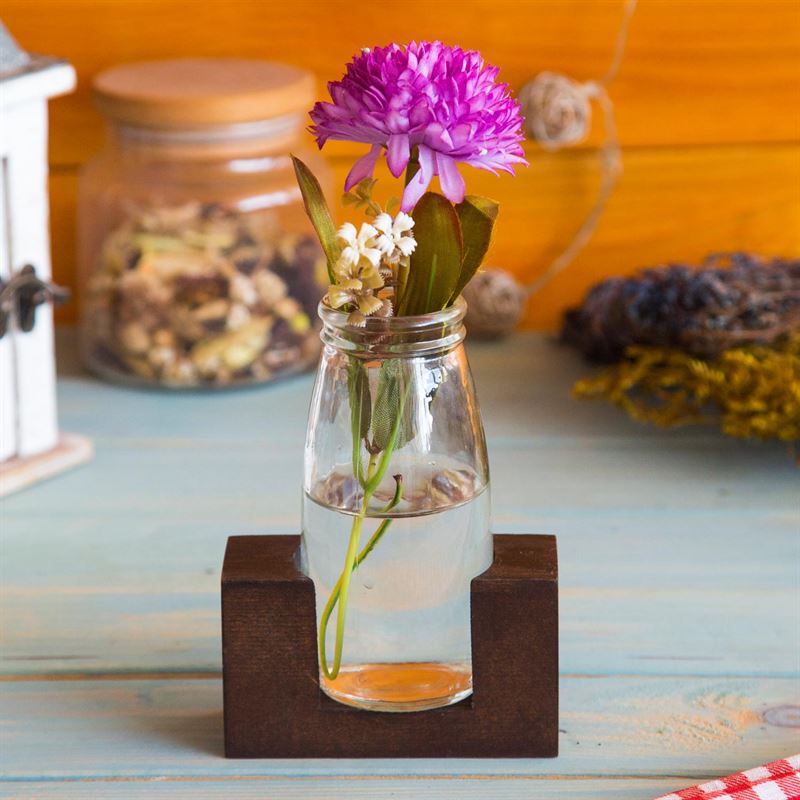 Le pot de fleur simple Joy Kitchen Milano se compose de 1 vase bouteille et 1 support en bois.