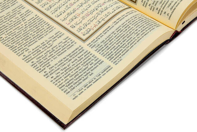 Sayfa Düzeni: Bir sayfa Arapça Kur'ân metni, hemen karşı sayfada Türkçe meali ve alt tarafında muteber tefsir kitaplarından haşiyeler (dipnotlar) yer alır.