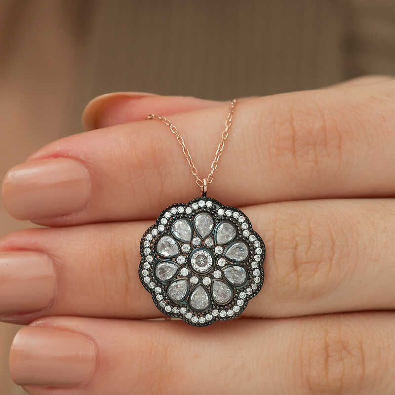 Teslimat: 1 x Gümüş Çiçek Desenli Elmas Montür Kolye
