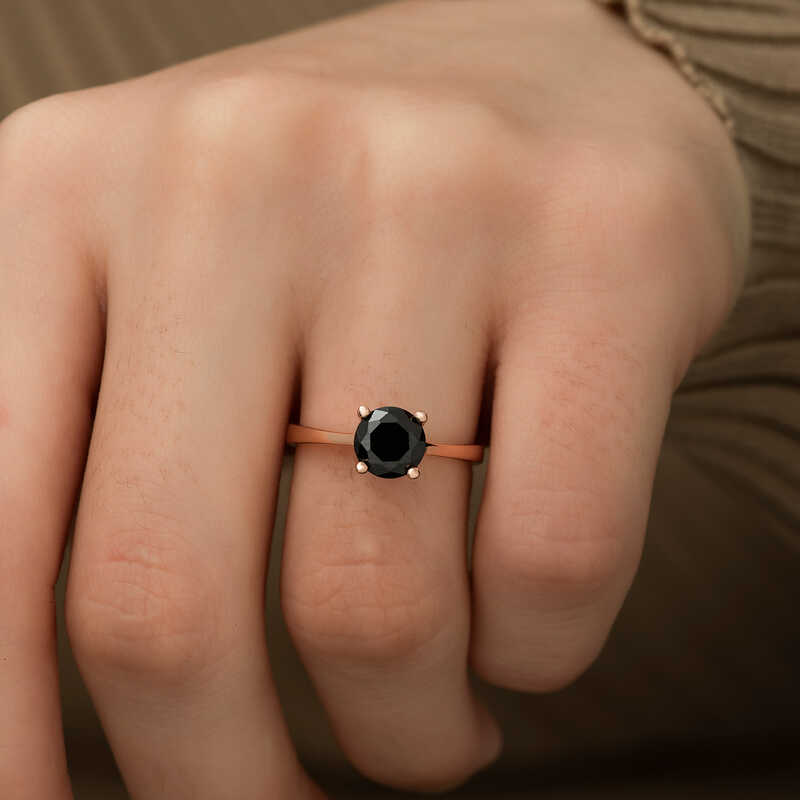 Aşkın sembolü olarak bilinen tek taş yüzükler, sade ve şık tasarımları ile kullanıcıların beğenisini kazanıyor. Evlilik tekliflerinde sıklıkla tercih edilen pırlanta tek taş yüzükler aşkı ve sadakati temsil ediyor. Farklı taş kesimleri ve taş boyutlarıyla sevdiğinizin kendini özel ve önemli hissetmesini sağlayabilirsiniz. Klasik tek taş modellerinin güzel bir örneği olan siyah tek taş yüzük modeli tüm bayan yüzük modelleri arasında dikkat çekici tasarımıyla ön plana çıkıyor. 925 ayar gümüşten imal edilmiş olup, yüzük üzerine rose altın kaplama yapılmıştır. Rose altın kaplama yapılan gümüş bayan yüzük modelleri parlaklığını uzun süre muhafaza eder. Yüzük üzerinde kullanılan siyah taş zirkondur. Bayan yüzük modellerimizin tamamı el emeği ile üretilmiştir. Gümüş ve değerli taşlar nedeniyle belirtilen ortalama ürün ağırlığında ± %10 sapma olabilmektedir.