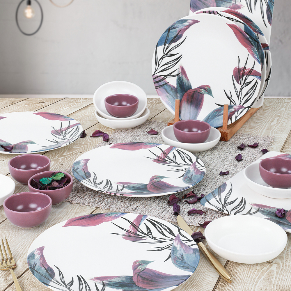 Göz alıcı çiçek desenlerinin soft renklerle bir araya geldiği Keramika Vio 20 Parça 6...plus