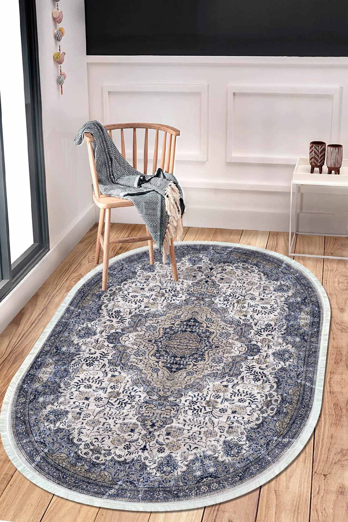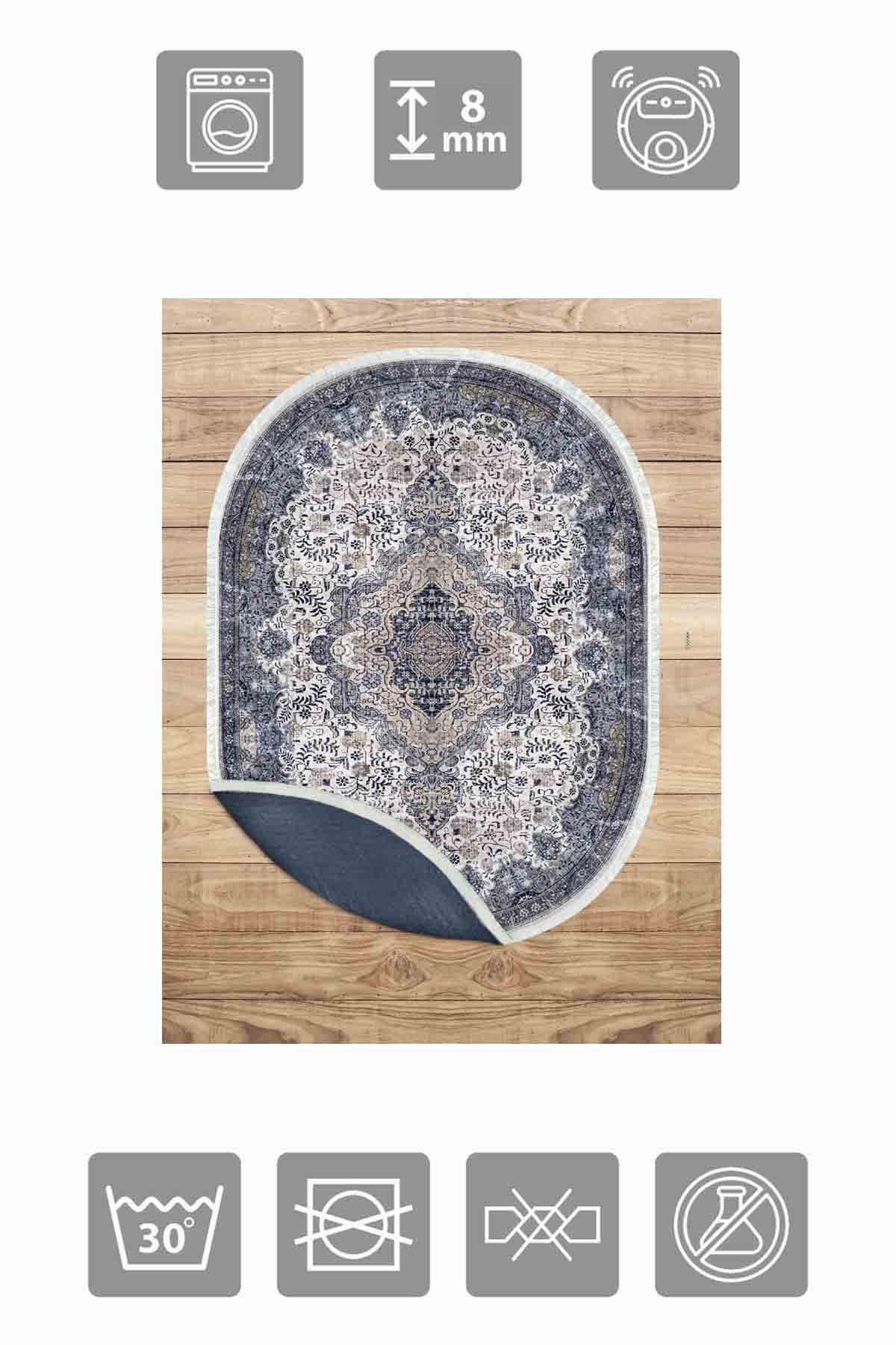 Dimensions et livraison : 1x Birkilim Tapis décoratif à base antidérapante soyeuse lavable ovale | MLN-IP-O-HT-337