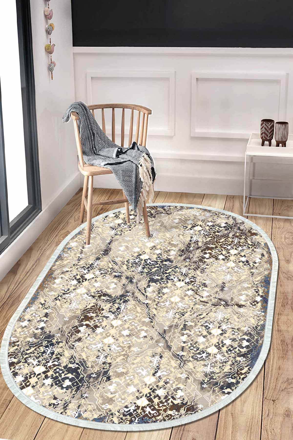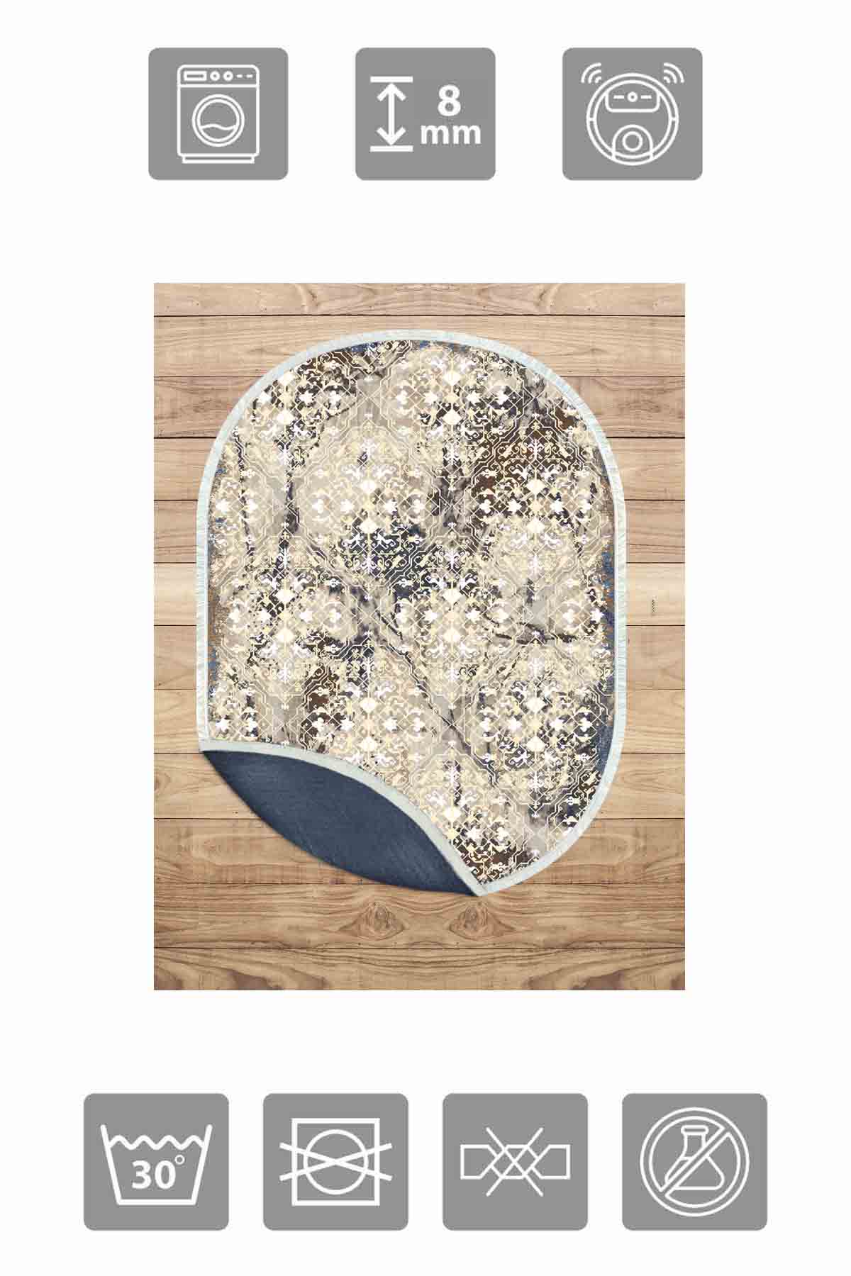 Dimensions et livraison : 1x Birkilim Tapis décoratif à base antidérapante soyeuse lavable ovale | MLN-IP-O-HT-378