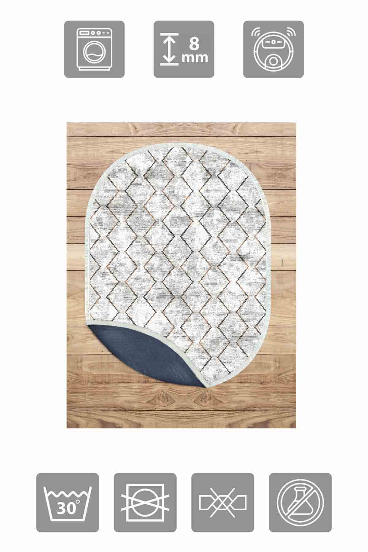Dimensions et livraison : 1x Birkilim Tapis décoratif à base antidérapante soyeuse lavable ovale | MLN-IP-O-HT-388
