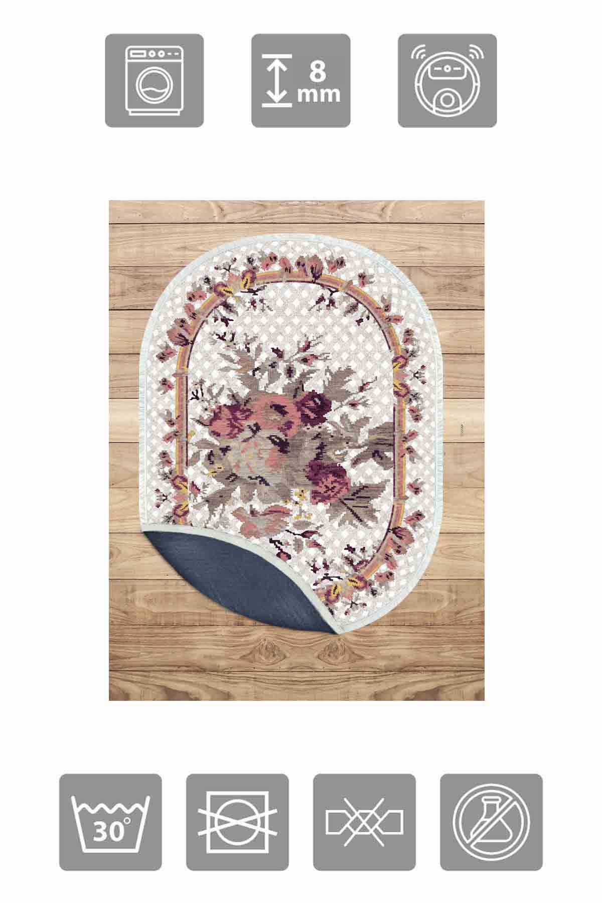 Dimensions et livraison : 1x Birkilim Tapis décoratif à base antidérapante soyeuse lavable ovale | MLN-IP-O-HT-451