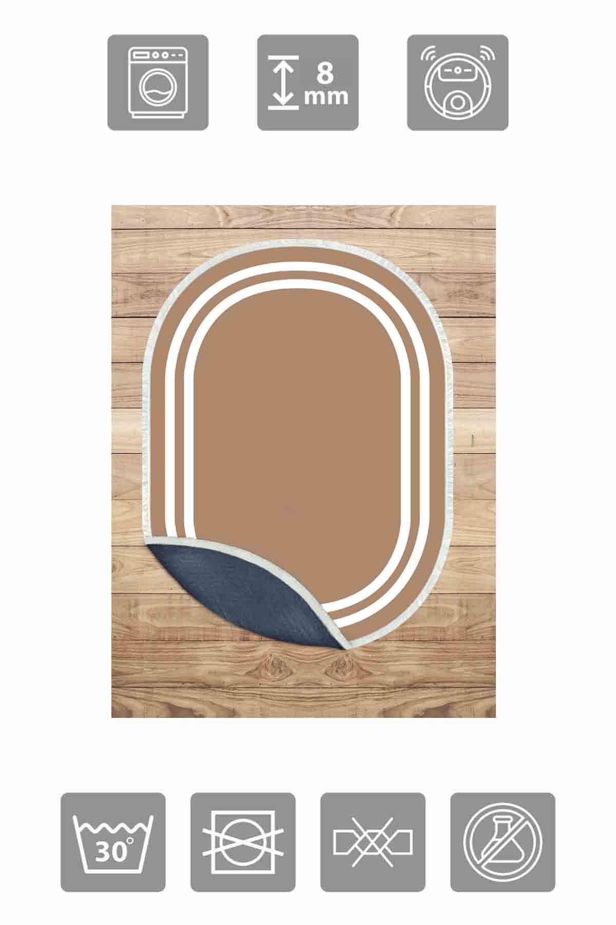 Informations sur le produit "Birkilim Tapis décoratif à base antidérapante soyeuse lavable ovale | MLN-IP-O-HT-532"