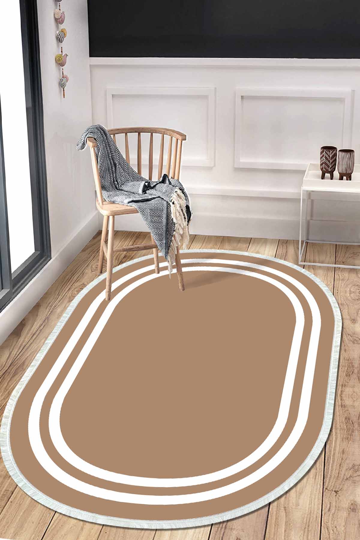 Birkilim Tapis décoratif à base antidérapante soyeuse lavable ovale | MLN-IP-O-HT-532