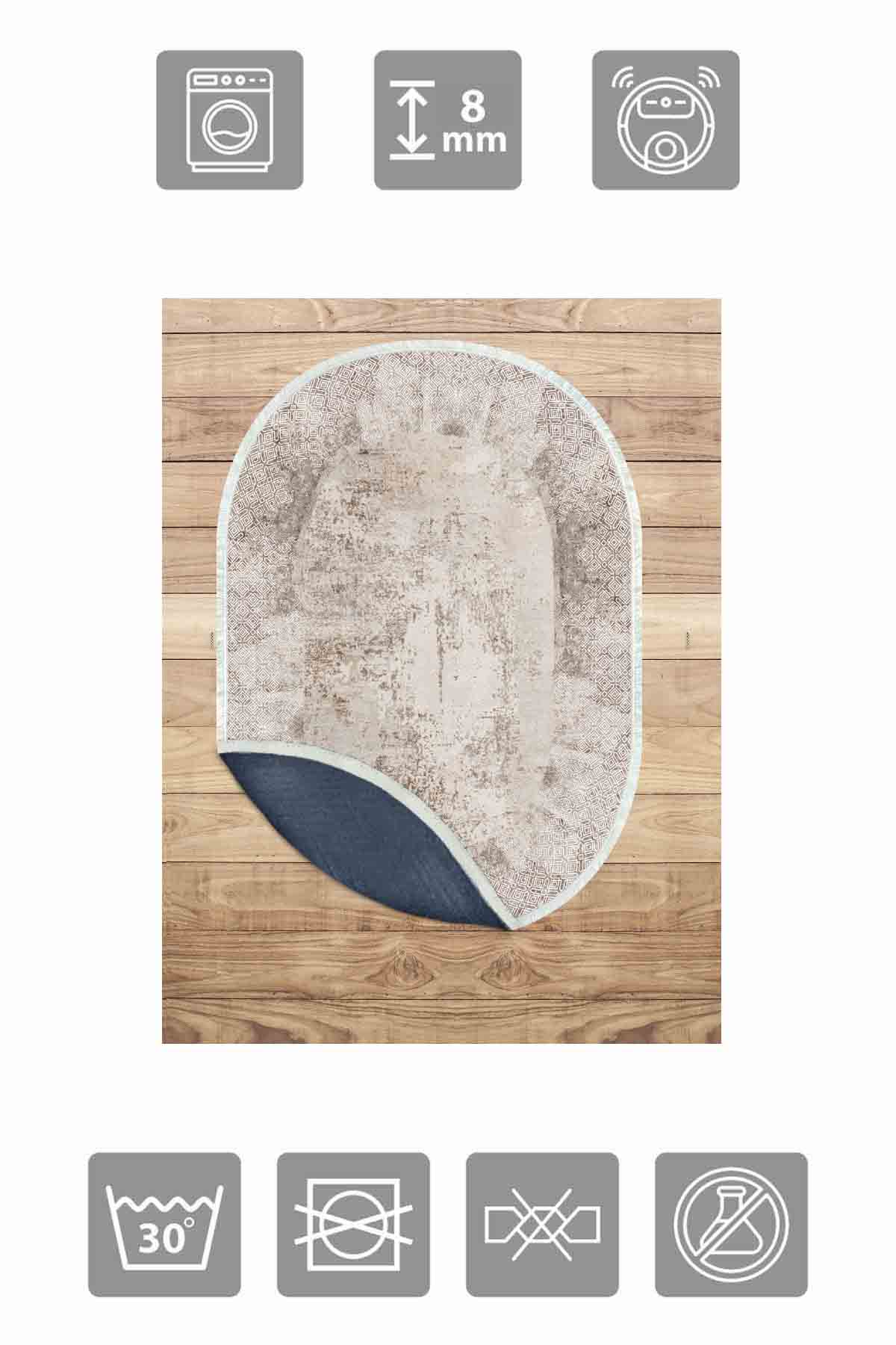 Birkilim Tapis décoratif à base antidérapante soyeuse lavable ovale | MLN-IP-O-HT-948