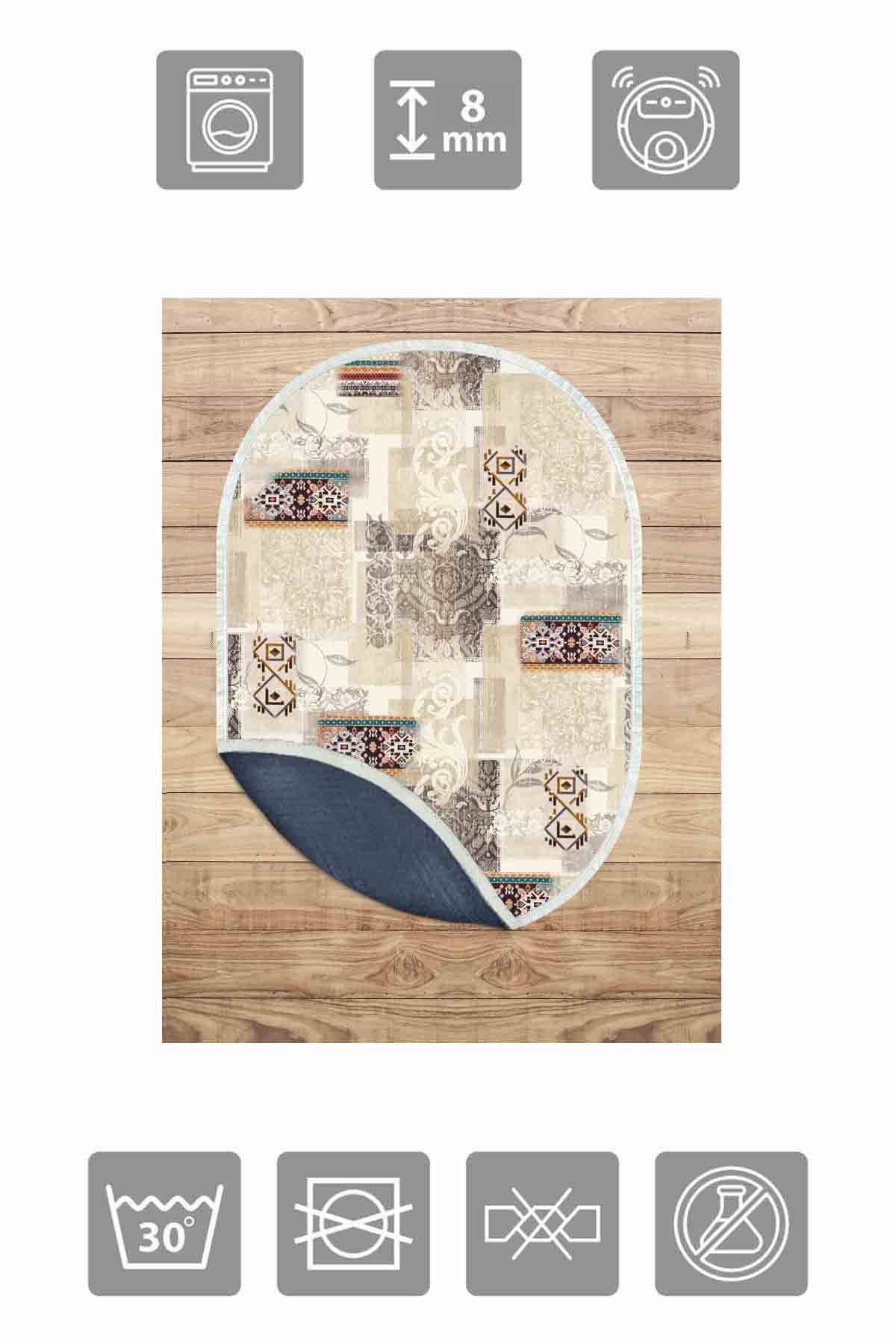 Dimensions et livraison : 1x Birkilim Tapis décoratif à base antidérapante soyeuse lavable ovale | MLN-IP-O-HT-951