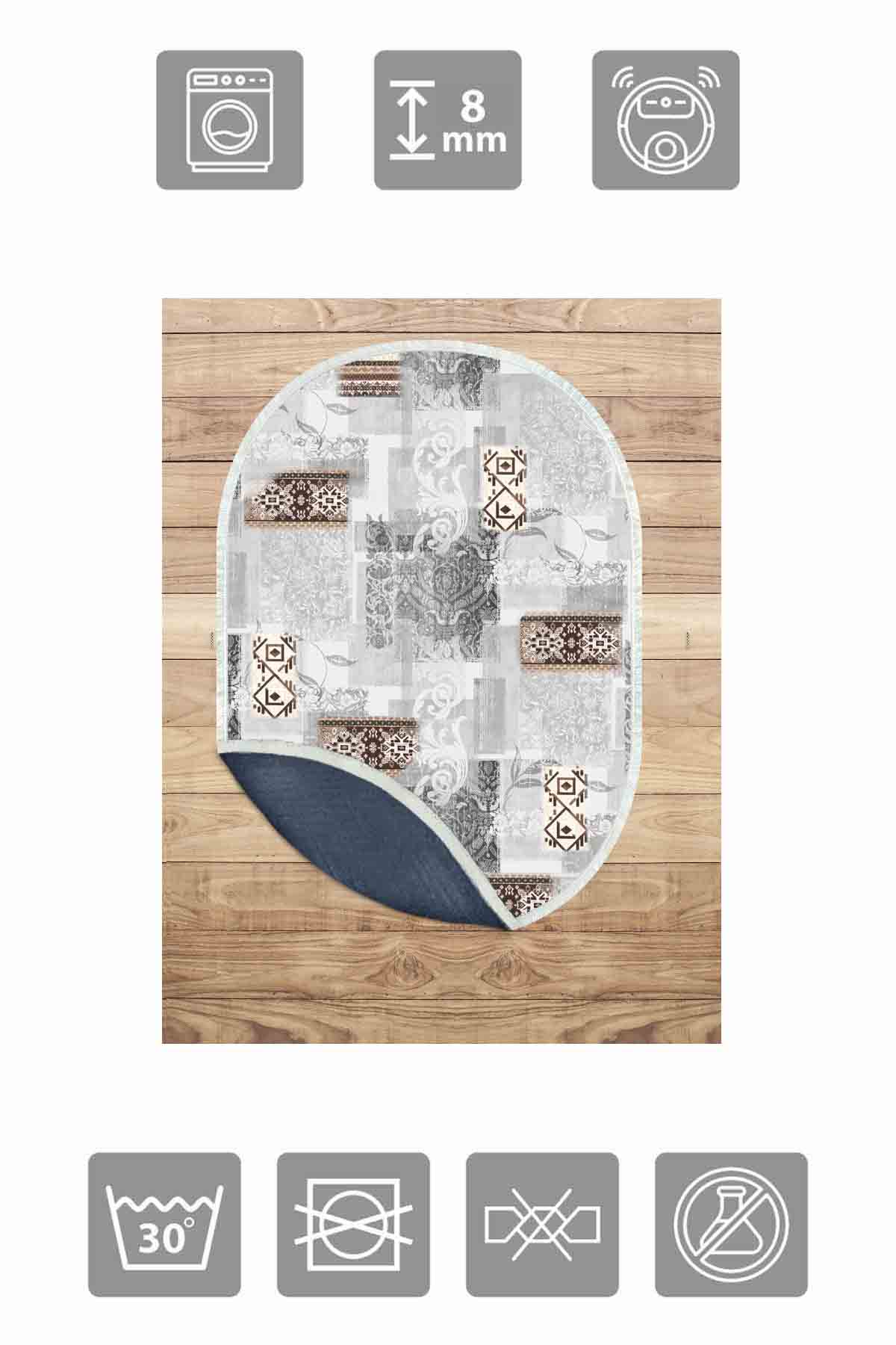 Dimensions et livraison : 1x Birkilim Tapis décoratif à base antidérapante soyeuse lavable ovale | MLN-IP-O-HT-952