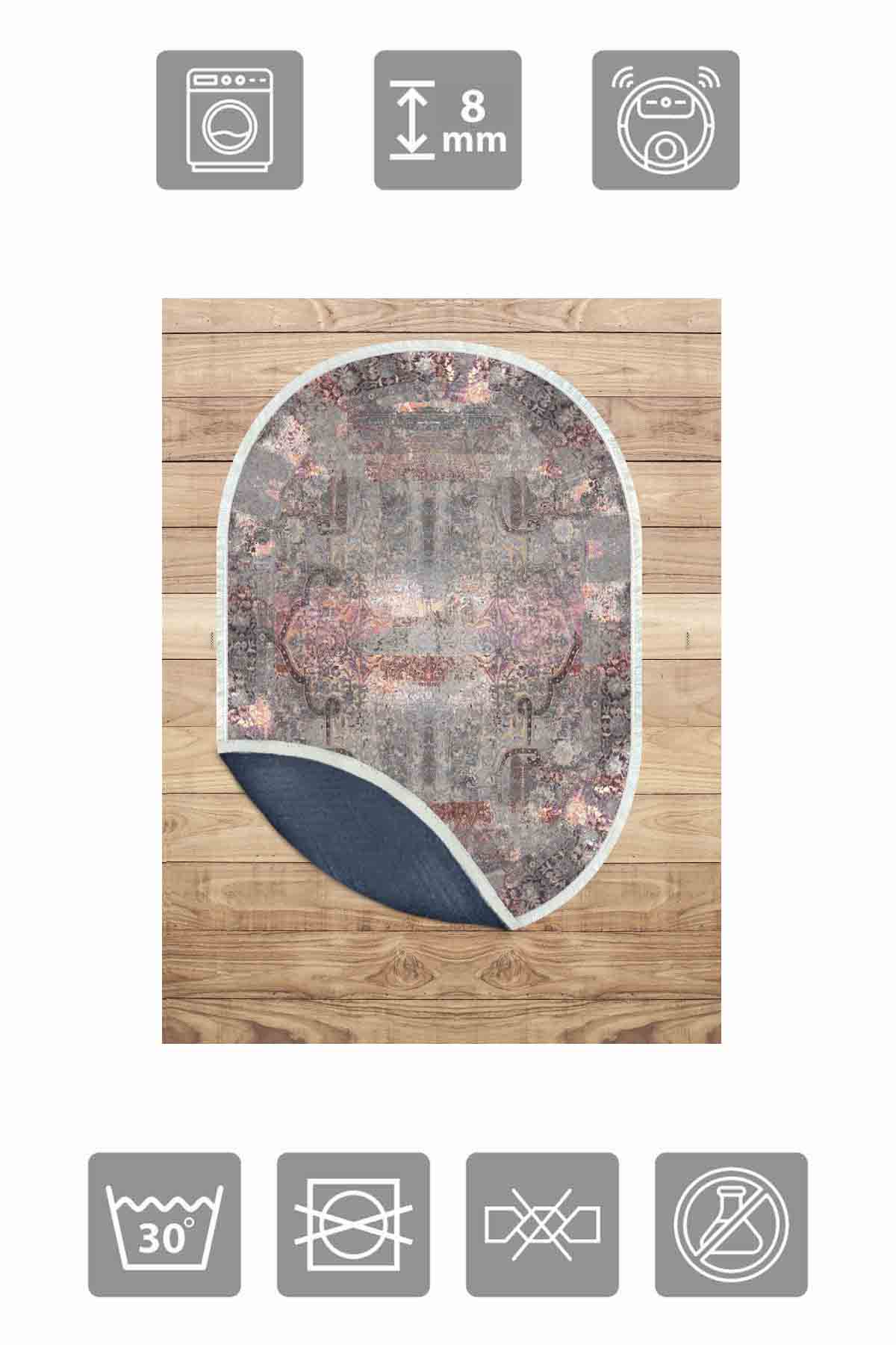 Dimensions et livraison : 1x Birkilim Tapis décoratif à base antidérapante soyeuse lavable ovale | MLN-IP-O-HT-953