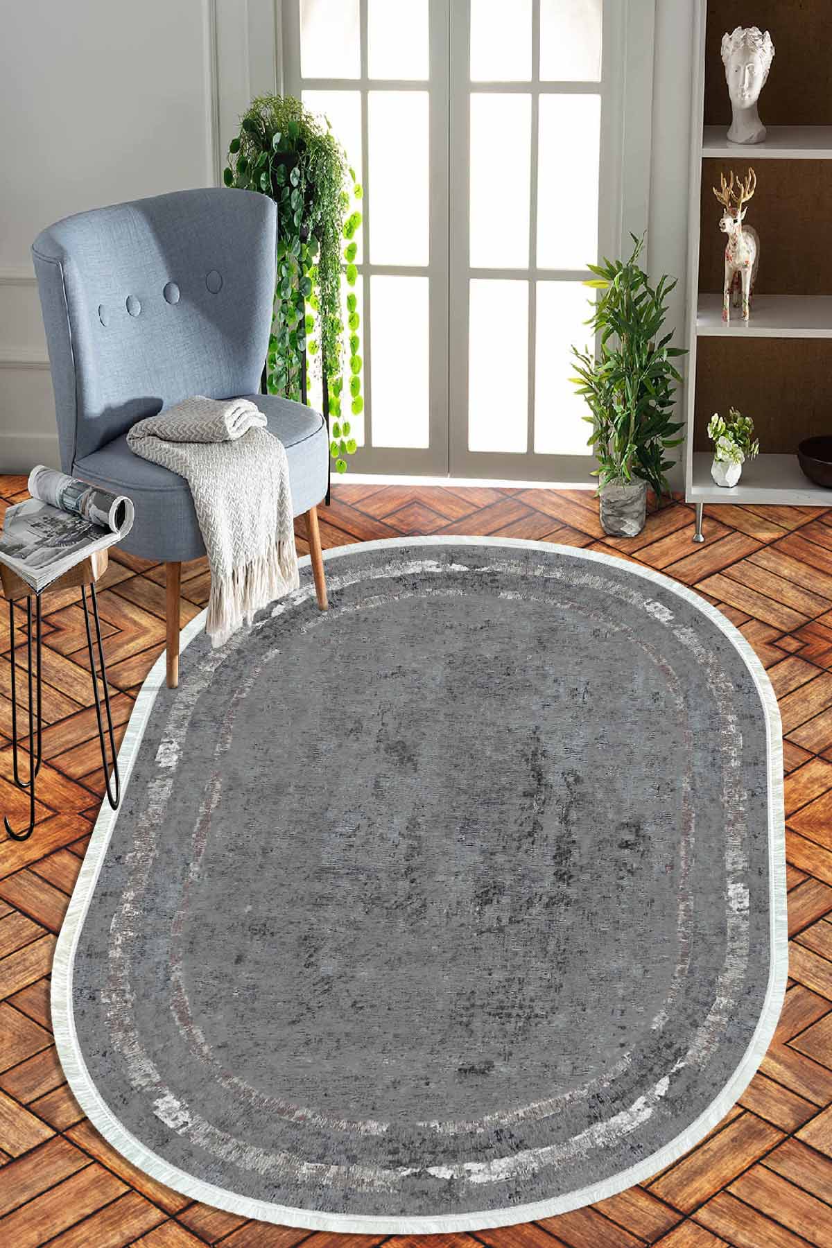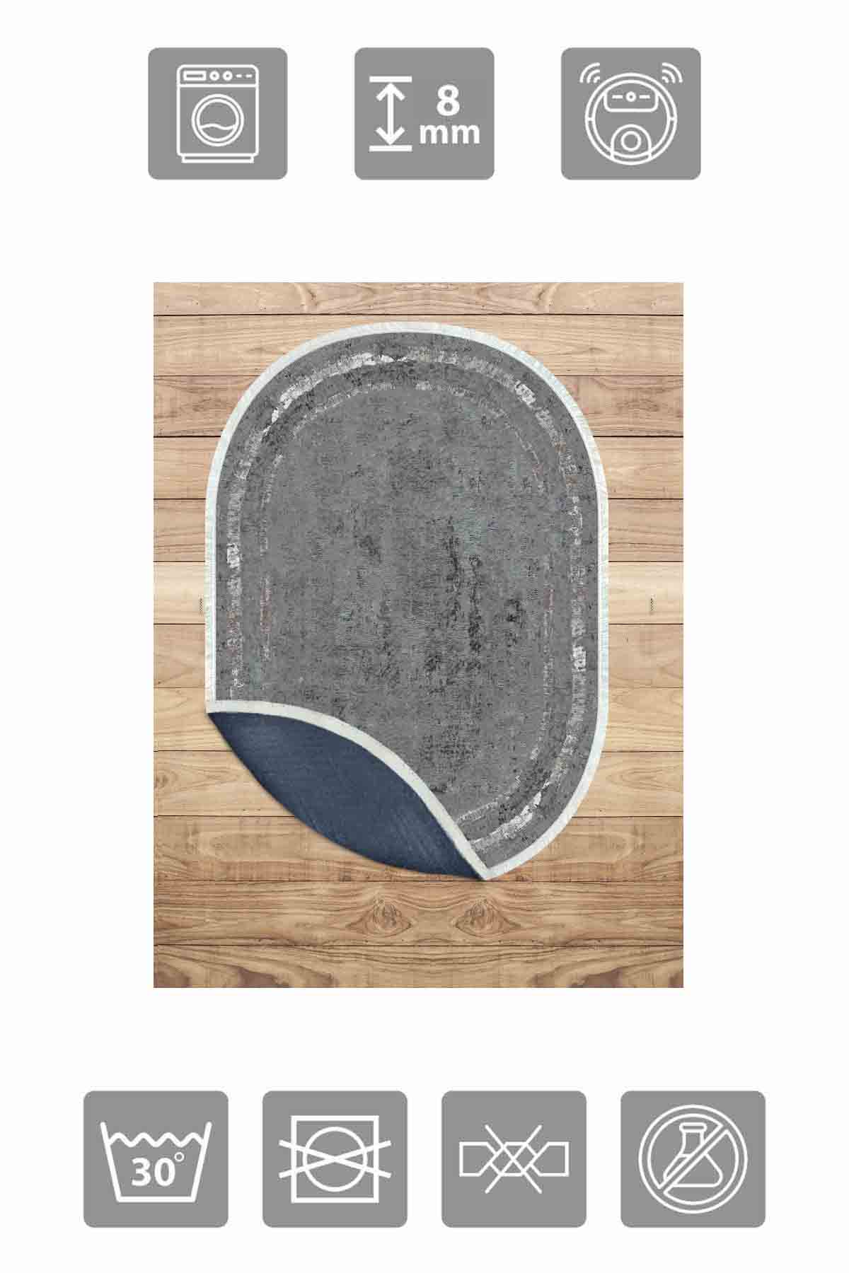Birkilim Tapis décoratif à base antidérapante soyeuse lavable ovale | MLN-IP-O-HT-965