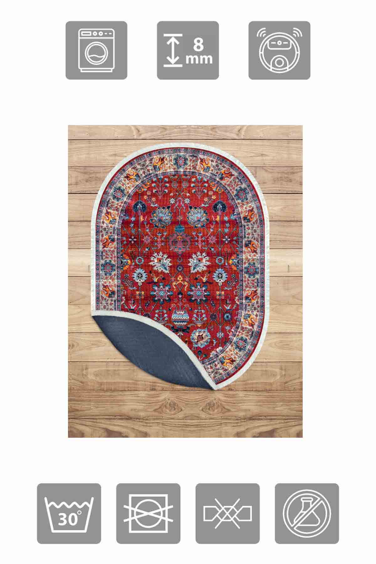 Dimensions et livraison : 1x Birkilim Tapis décoratif à base antidérapante soyeuse lavable ovale | MLN-IP-O-HT-994