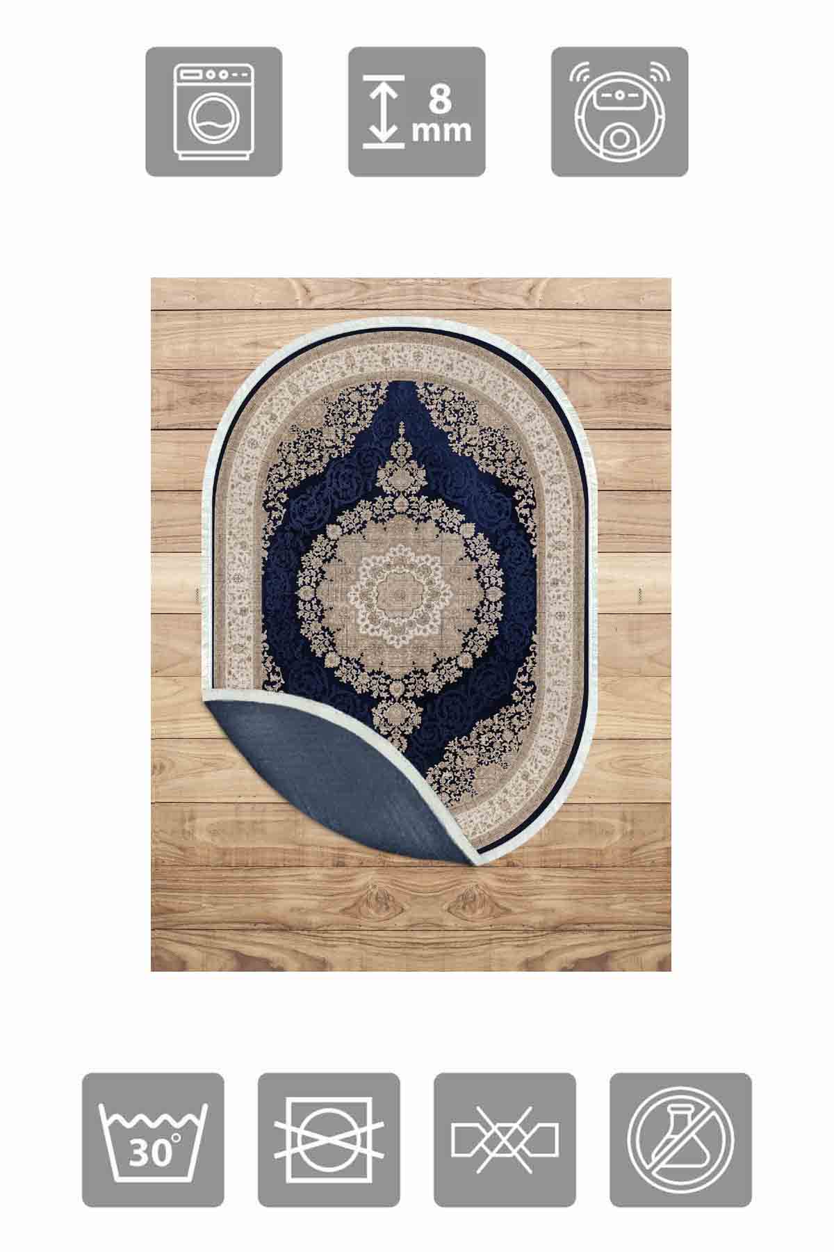 Dimensions et livraison : 1x Birkilim Tapis décoratif à base antidérapante soyeuse lavable ovale | MLN-IP-O-HT-996