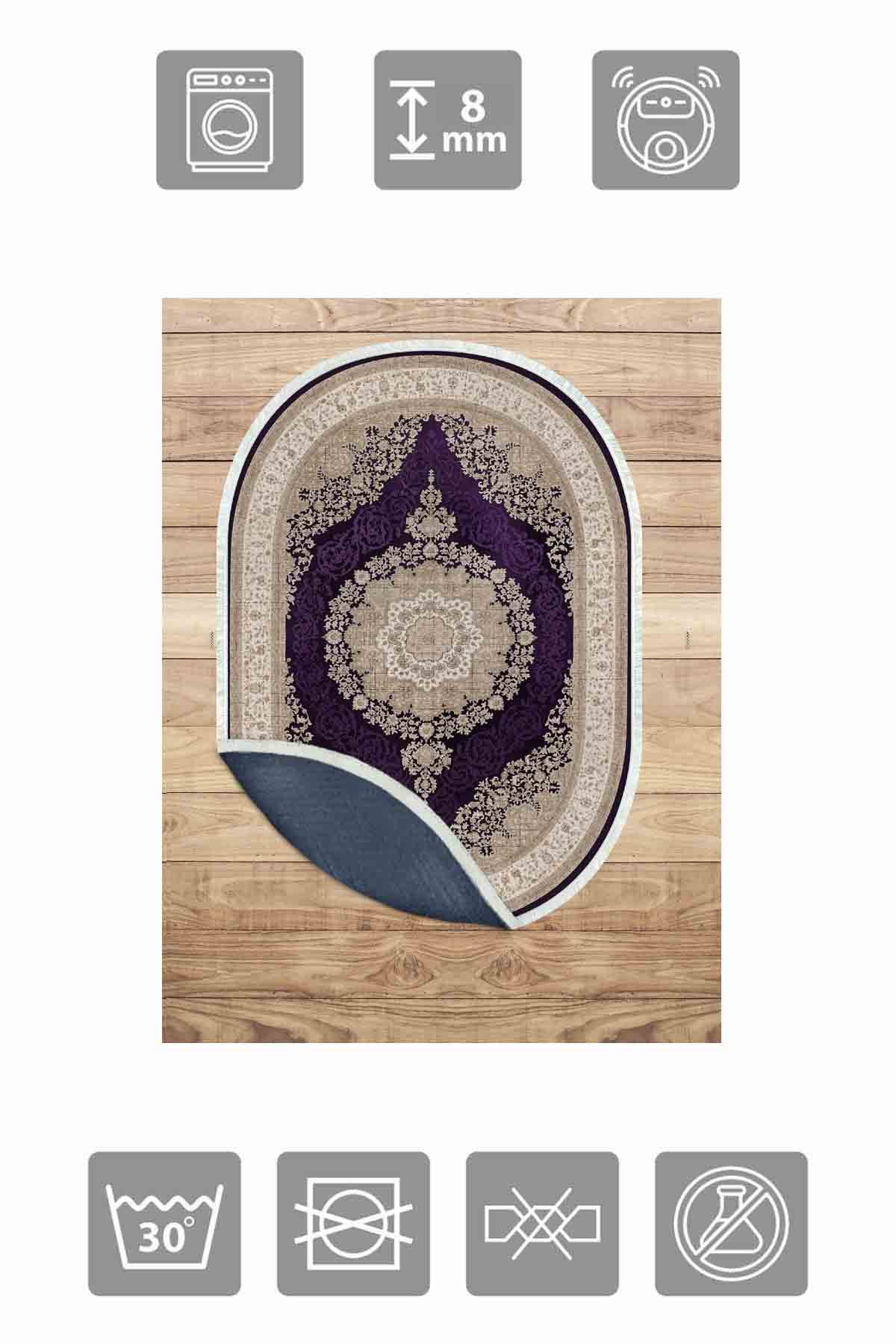 Dimensions et livraison : 1x Birkilim Tapis décoratif à base antidérapante soyeuse lavable ovale | MLN-IP-O-HT-1014