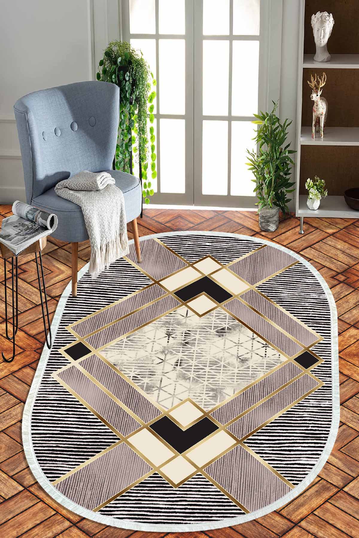 Dimensions et livraison : 1x Birkilim Tapis décoratif à base antidérapante soyeuse lavable ovale | MLN-IP-O-HT-1073