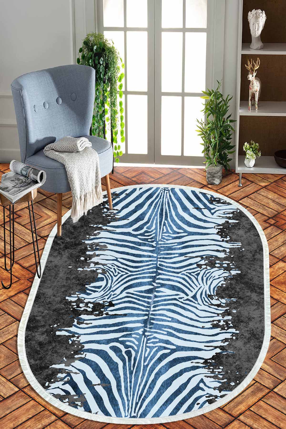 Birkilim Tapis décoratif à base antidérapante soyeuse lavable ovale | MLN-IP-O-HT-1118
