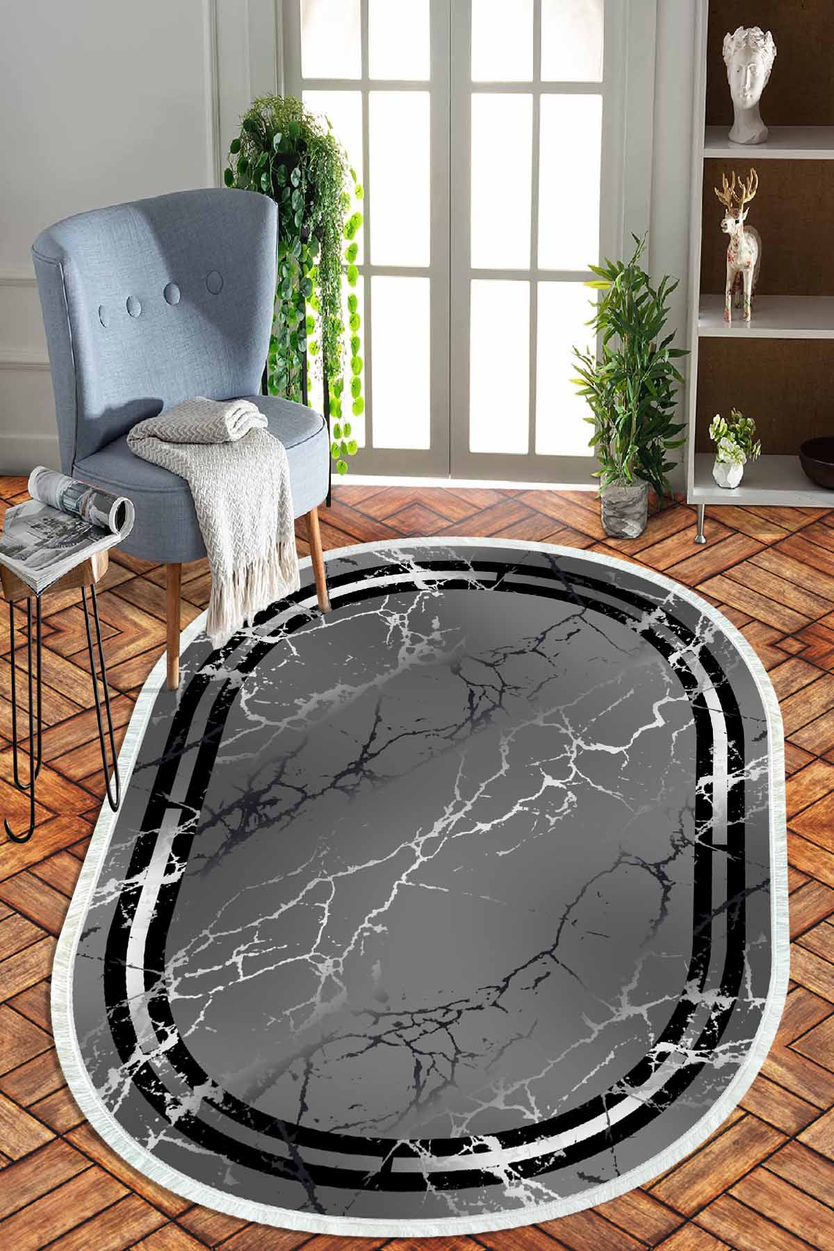 Dimensions et livraison : 1x Birkilim Tapis décoratif à base antidérapante soyeuse lavable ovale | MLN-IP-O-HT-1260