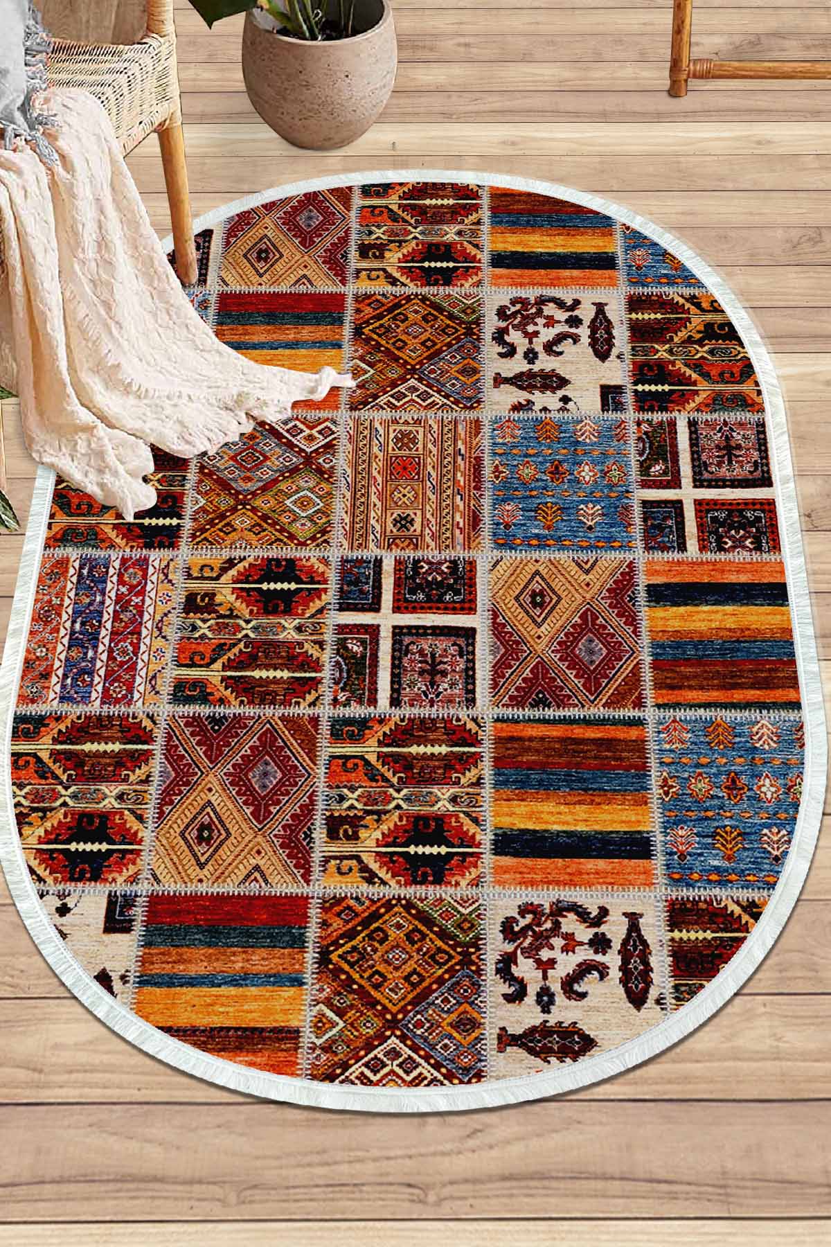 Birkilim Tapis décoratif à base antidérapante soyeuse lavable ovale | MLN-IP-O-HT-1518