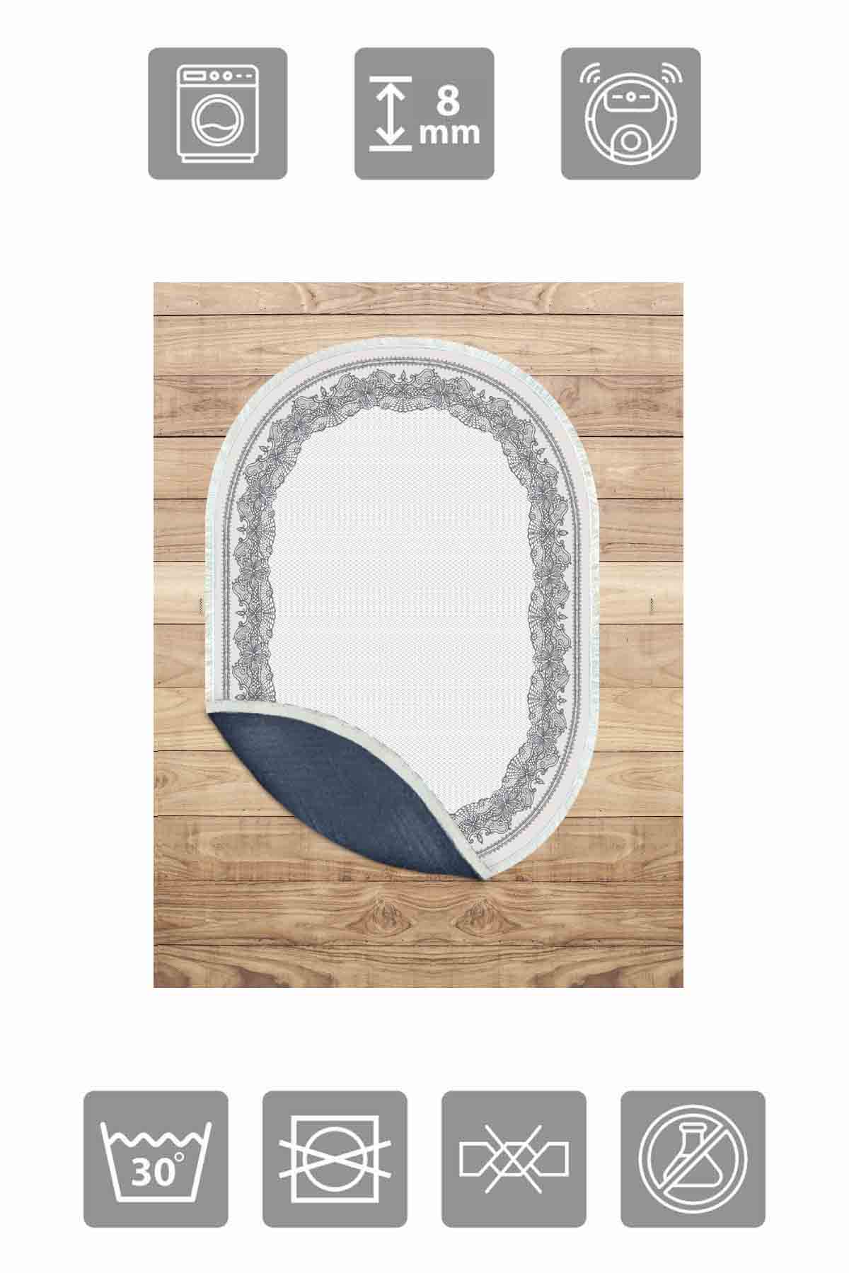 Dimensions et livraison : 1x Birkilim Tapis décoratif à base antidérapante soyeuse lavable ovale | MLN-IP-O-HY-896