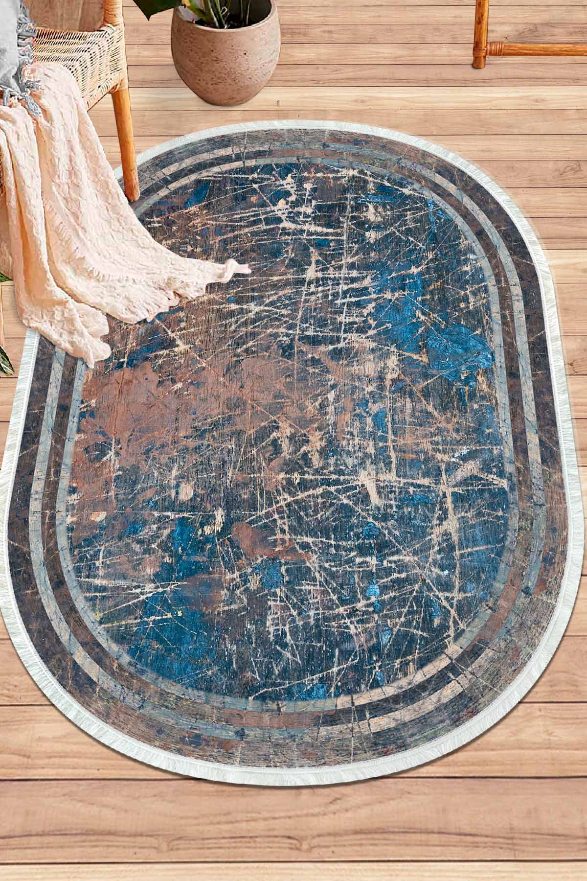 Birkilim Tapis décoratif à base antidérapante soyeuse lavable ovale | MLN-IP-O-HY-1271