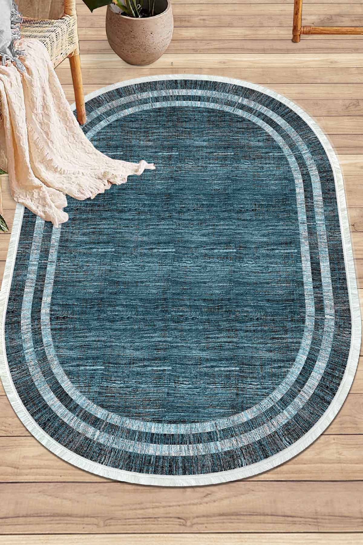 Birkilim Tapis décoratif à base antidérapante soyeuse lavable ovale | MLN-IP-O-HY-1311