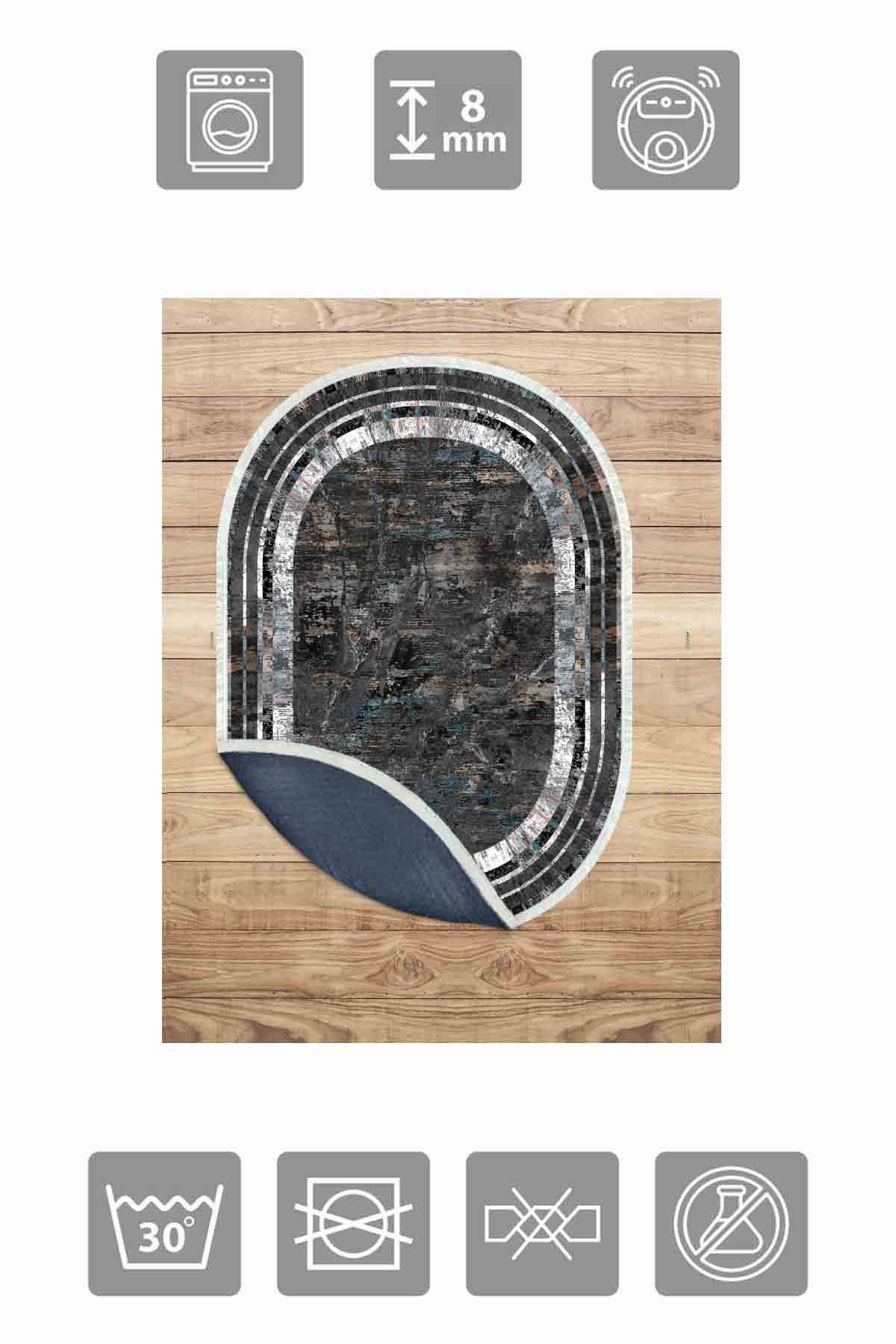 Dimensions et livraison : 1x Birkilim Tapis décoratif à base antidérapante soyeuse lavable ovale | MLN-IP-O-HY-1317