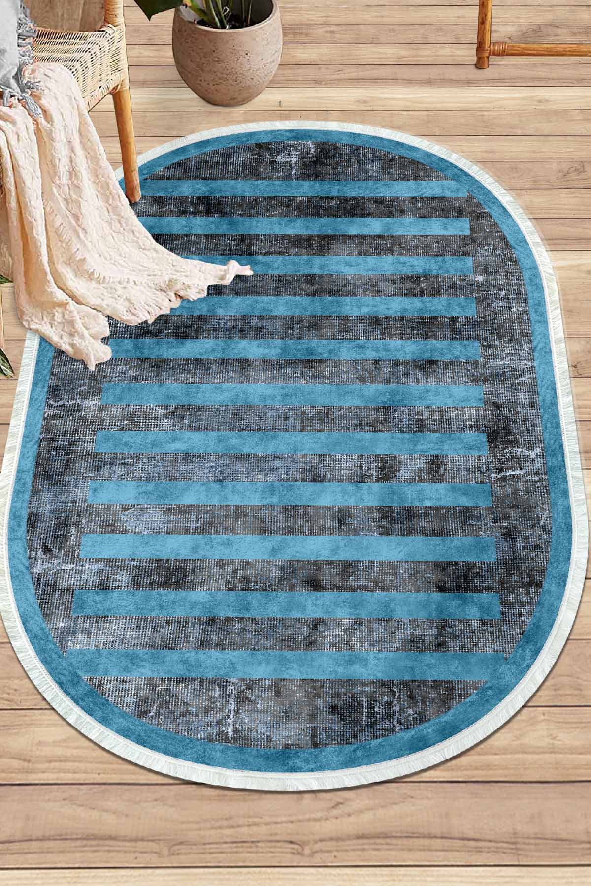 Birkilim Tapis décoratif à base antidérapante soyeuse lavable ovale | MLN-IP-O-SD-249