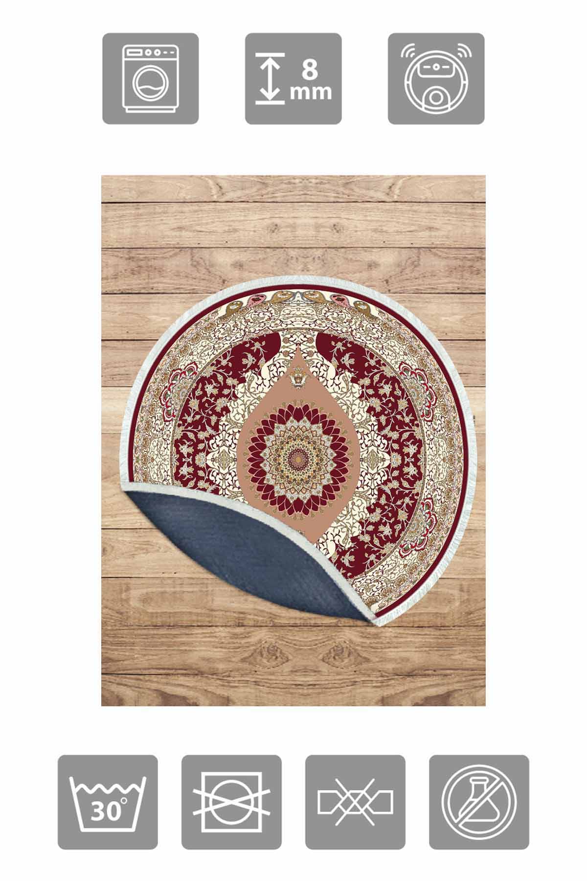 Dimensions et livraison : 1x Birkilim Tapis Décoratif Rond Lavable Soyeux Base Antidérapante | MLN-IP-YU-HK-028