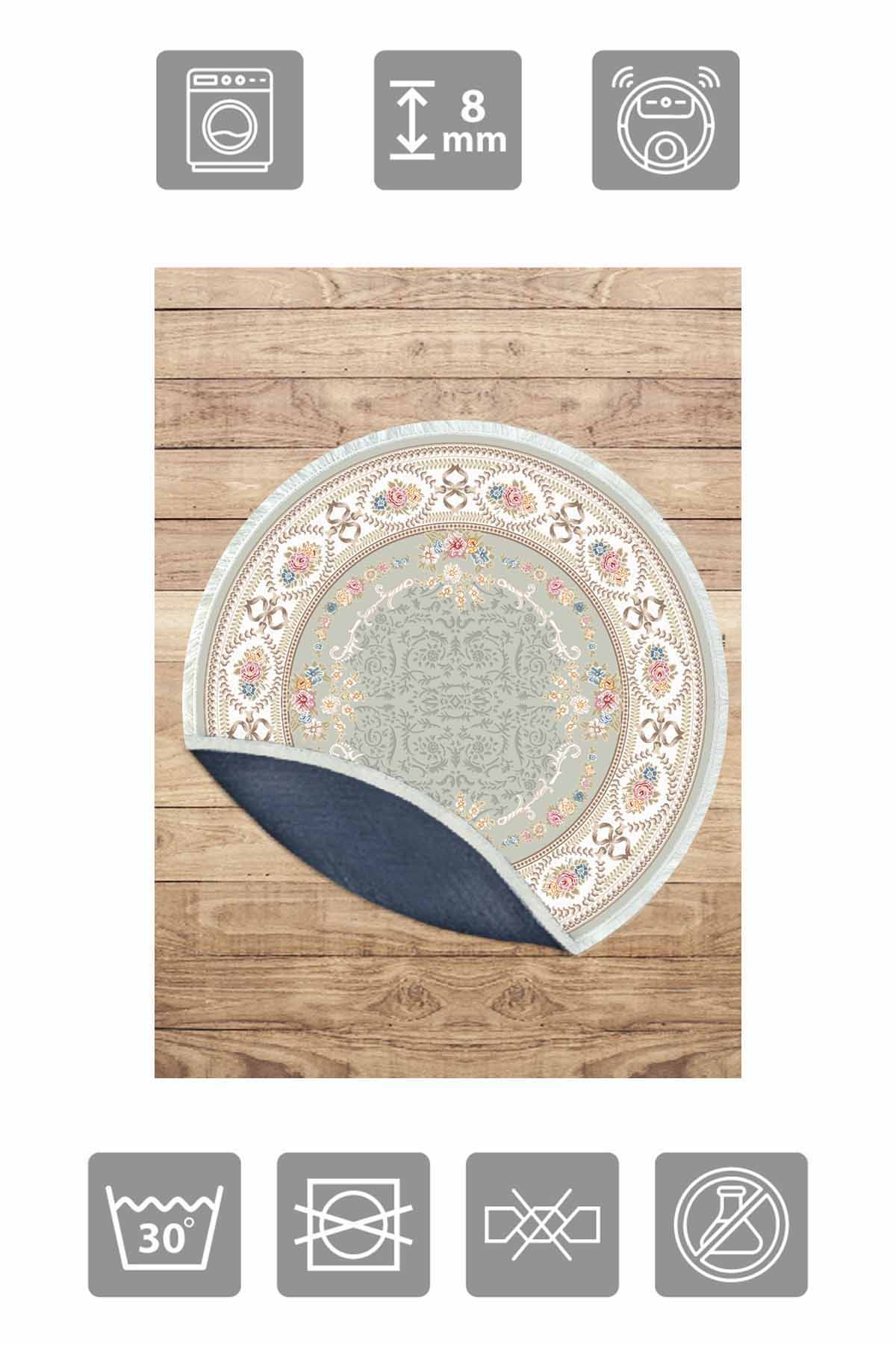 Dimensions et livraison : 1x Birkilim Tapis Décoratif Rond Lavable Soyeux Base Antidérapante | MLN-IP-YU-HK-173