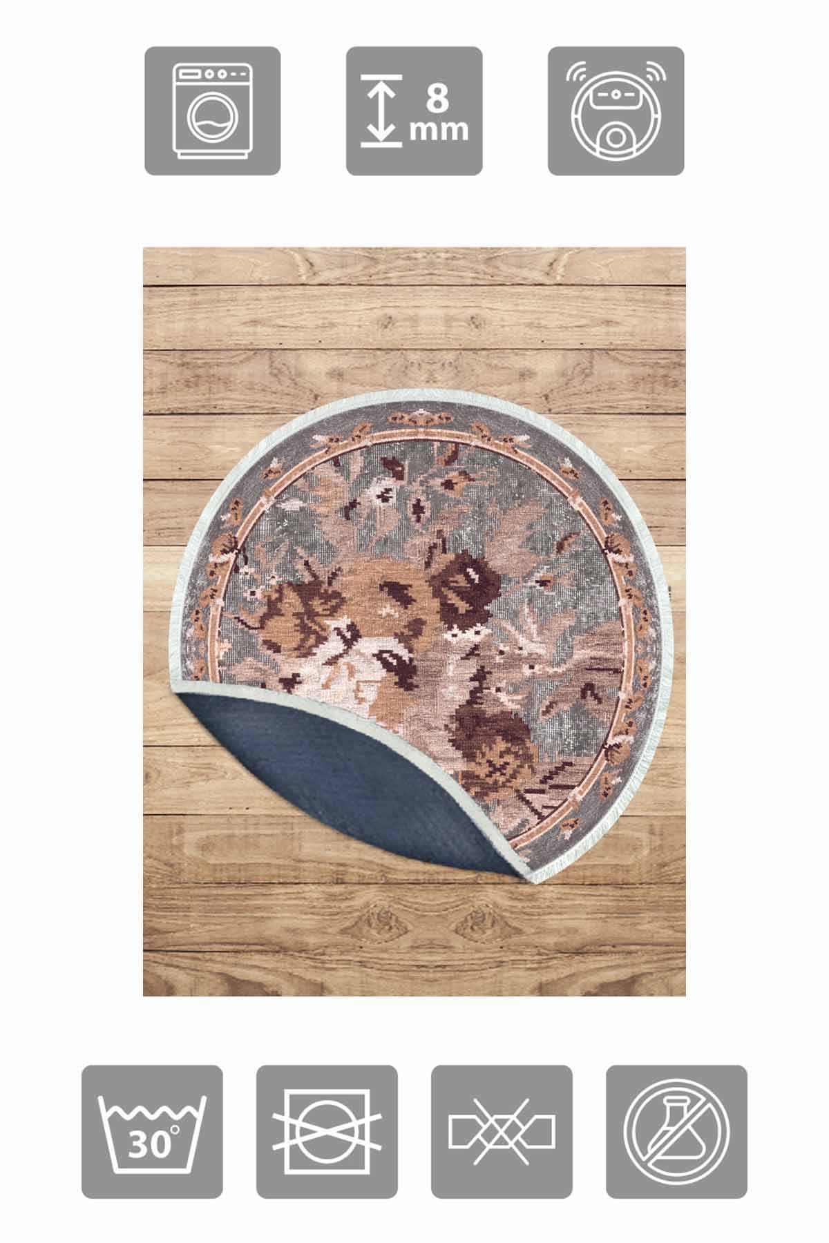 Informations sur le produit "Birkilim Tapis Décoratif Rond Lavable Soyeux Base Antidérapante | MLN-IP-YU-HT-153"