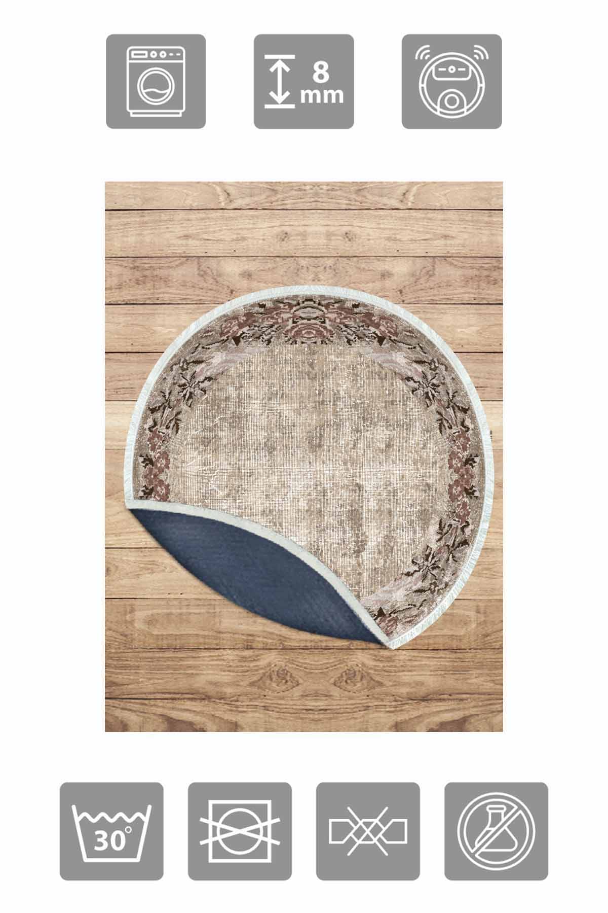 Dimensions et livraison : 1x Birkilim Tapis Décoratif Rond Lavable Soyeux Base Antidérapante | MLN-IP-YU-HT-154