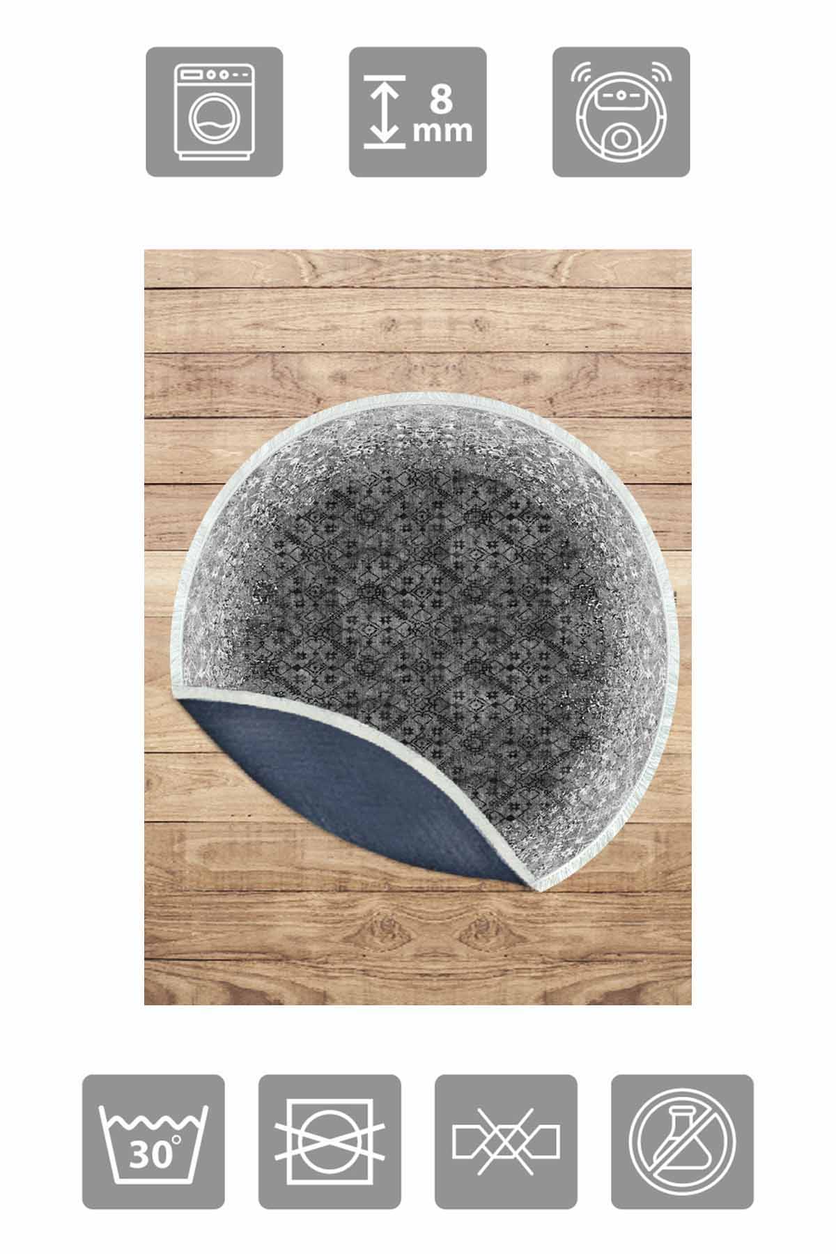 Dimensions et livraison : 1x Birkilim Tapis Décoratif Rond Lavable Soyeux Base Antidérapante | MLN-IP-YU-HT-244