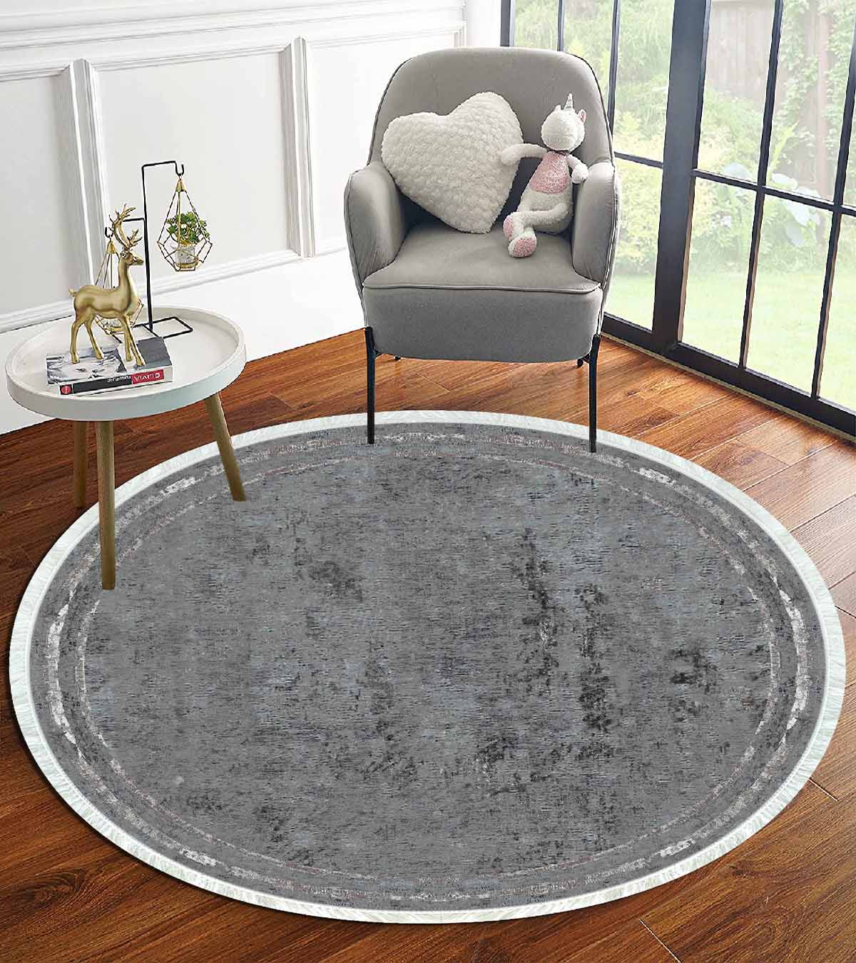 Birkilim Tapis Décoratif Rond Lavable Soyeux Base Antidérapante | MLN-IP-YU-HT-965