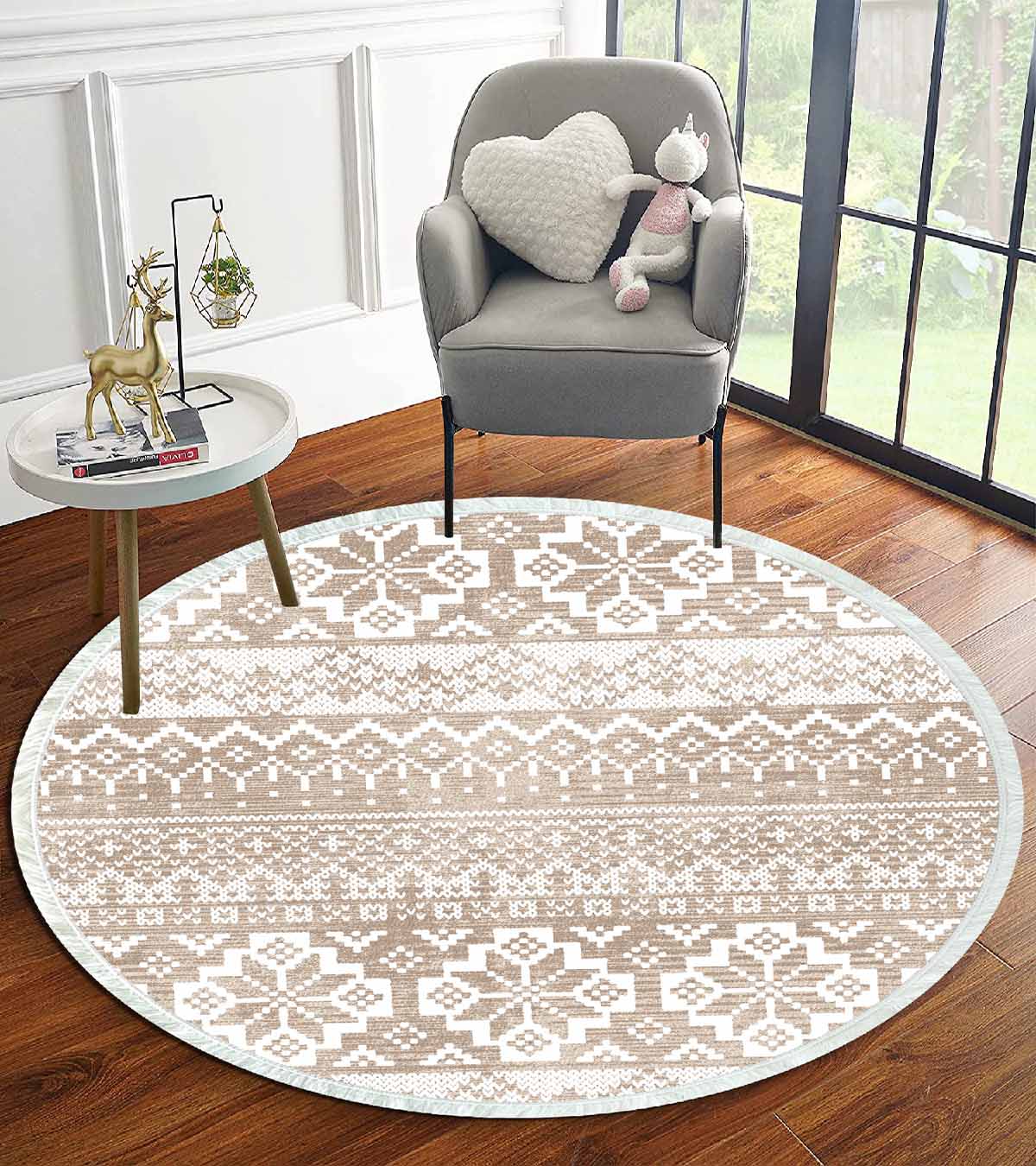 Birkilim Tapis Décoratif Rond Lavable Soyeux Base Antidérapante | MLN-IP-YU-HT-987