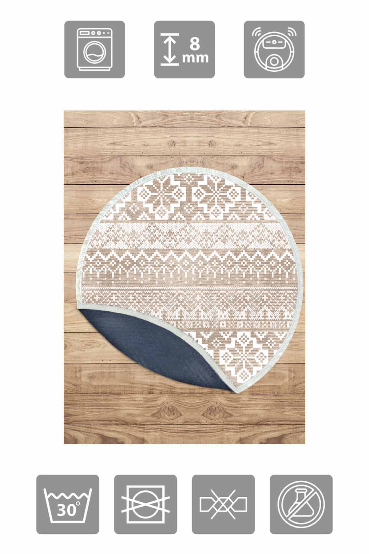 Informations sur le produit "Birkilim Tapis Décoratif Rond Lavable Soyeux Base Antidérapante | MLN-IP-YU-HT-987"