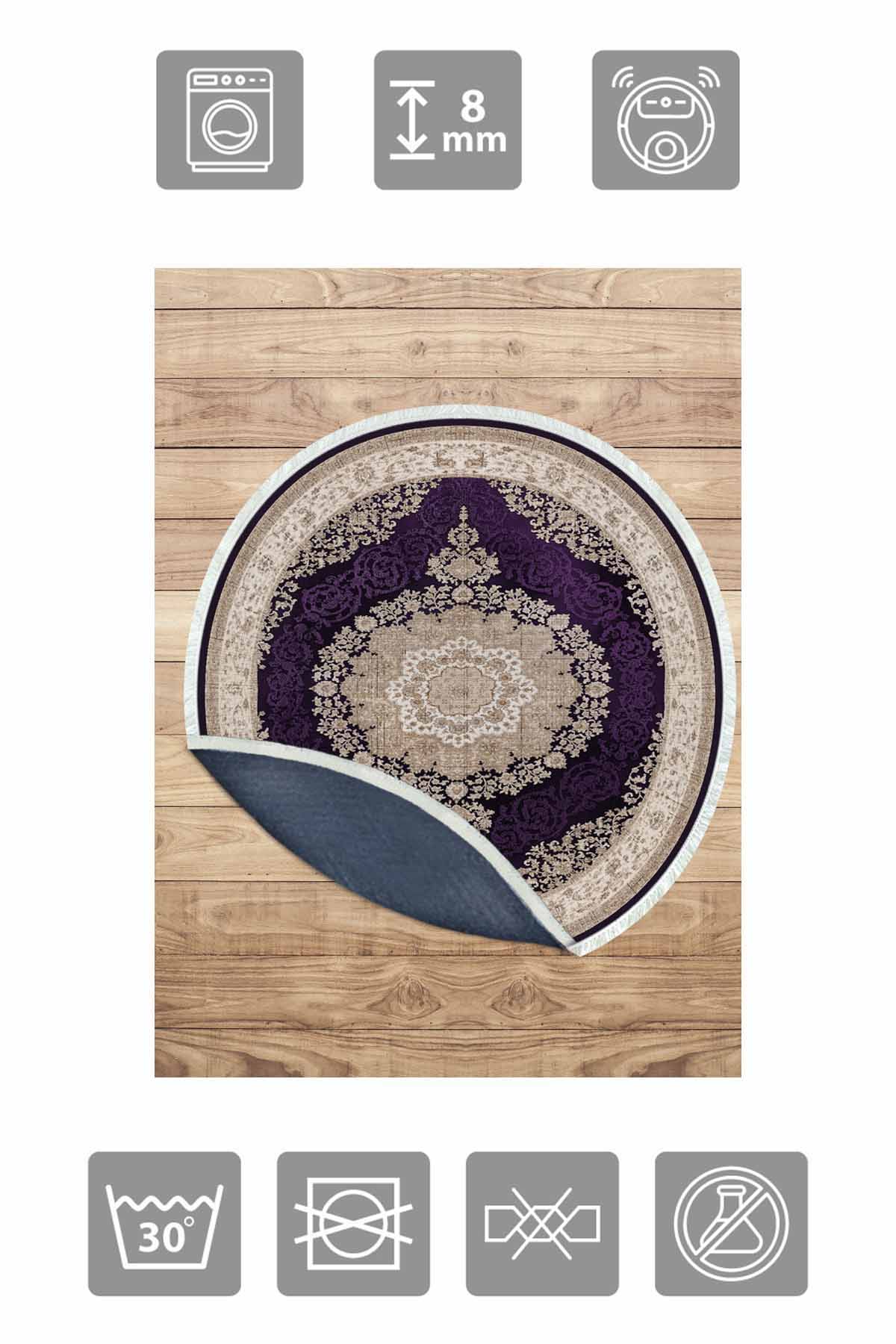 Informations sur le produit "Birkilim Tapis Décoratif Rond Lavable Soyeux Base Antidérapante | MLN-IP-YU-HT-1014"
