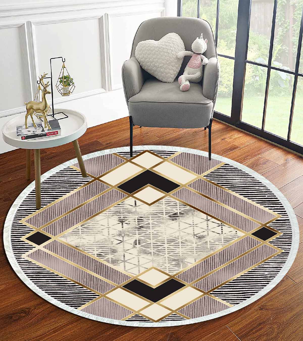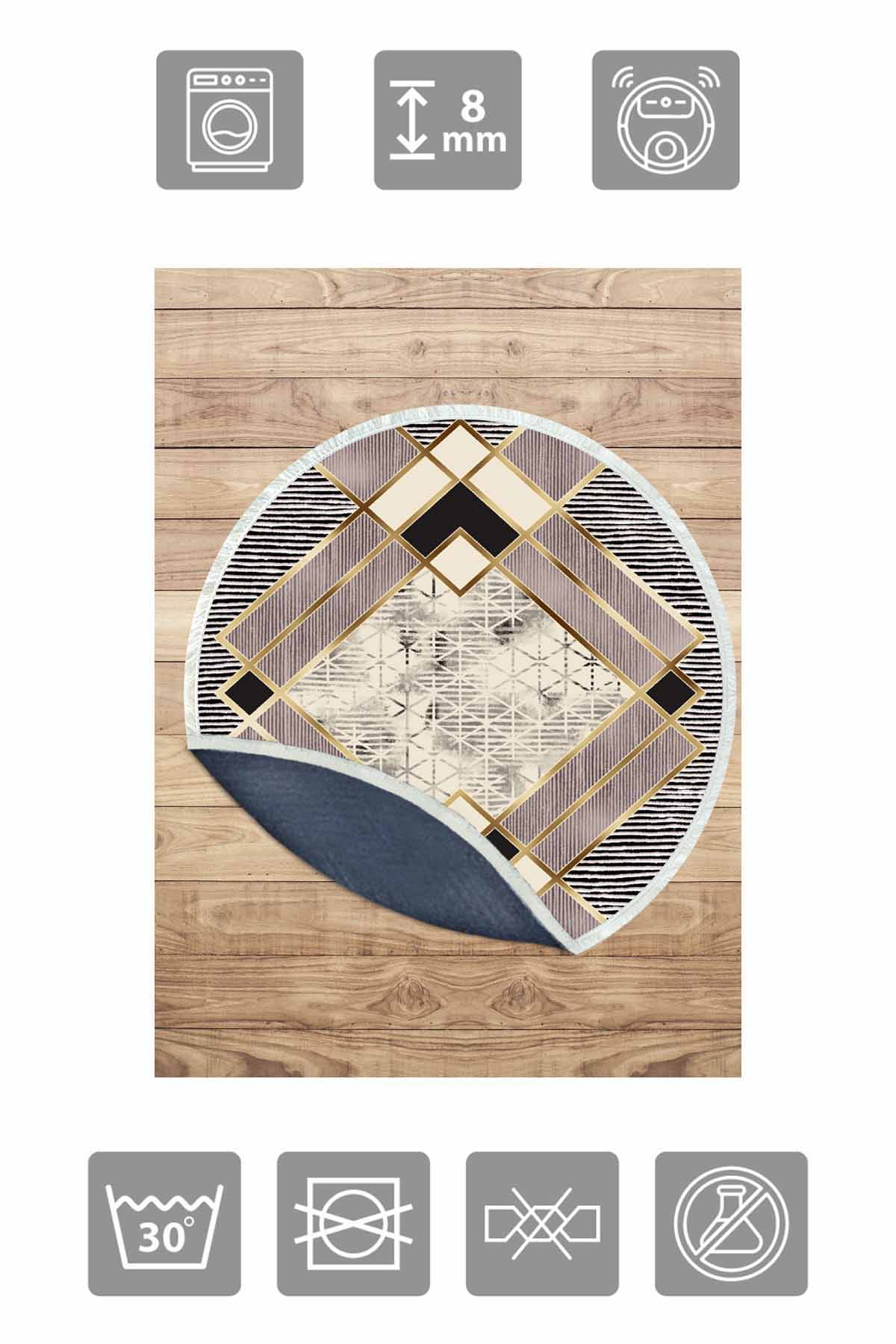 Dimensions et livraison : 1x Birkilim Tapis Décoratif Rond Lavable Soyeux Base Antidérapante | MLN-IP-YU-HT-1073
