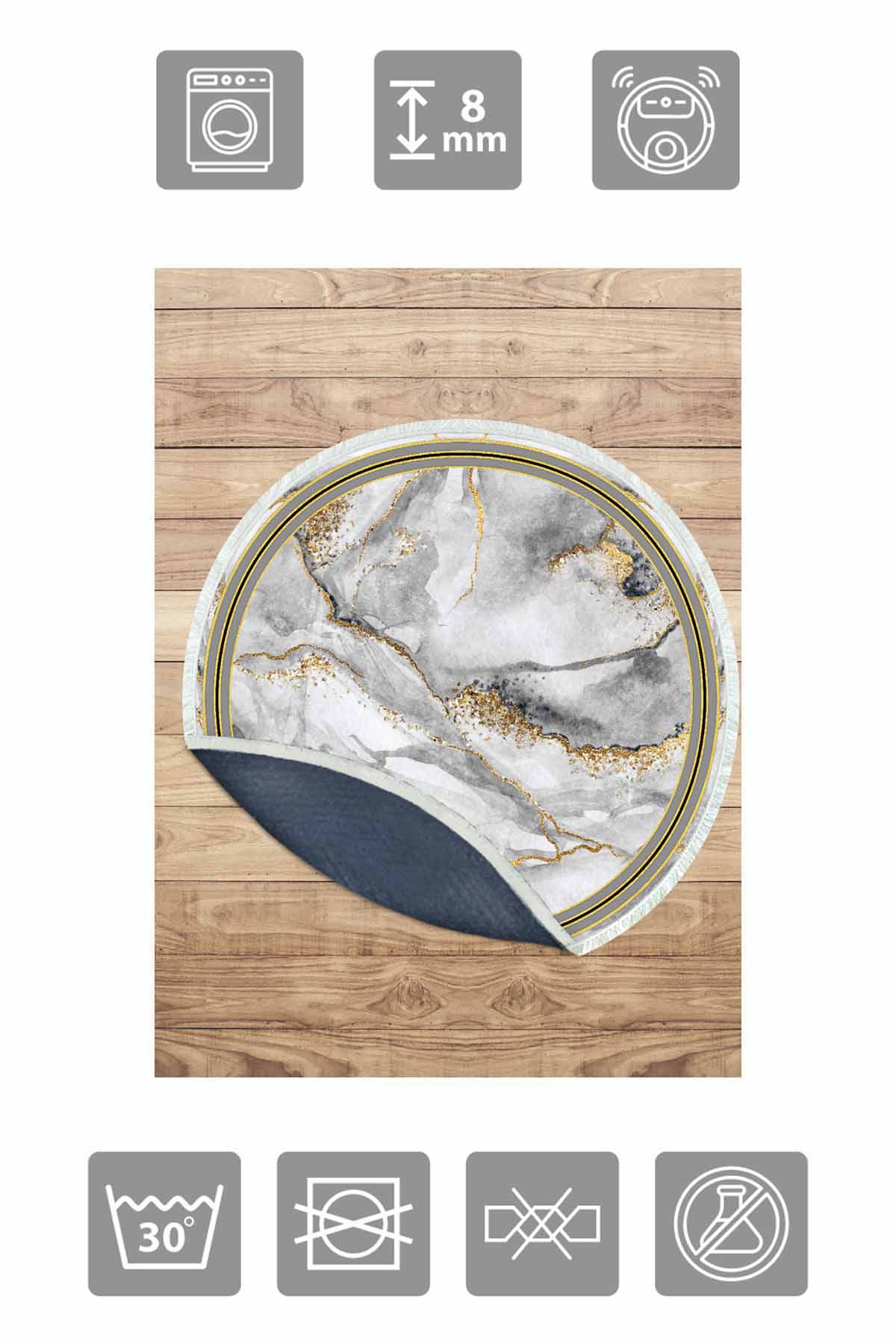 Informations sur le produit "Birkilim Tapis Décoratif Rond Lavable Soyeux Base Antidérapante | MLN-IP-YU-HY-966"
