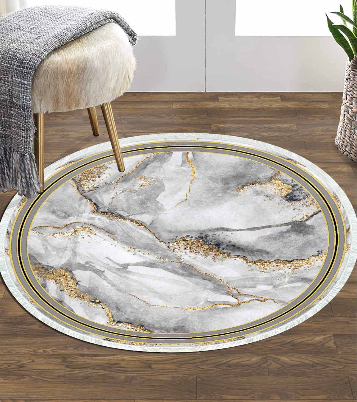 Birkilim Tapis Décoratif Rond Lavable Soyeux Base Antidérapante | MLN-IP-YU-HY-966