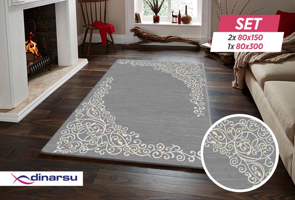 Teslimat: 1x Dinarsu New Florida Lurex Halı Seti | 80x150 | 80x300 | Gri