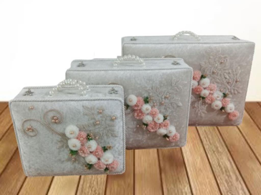 Liens supplémentaires vers "Dowry Land Velvet Sac de dot 3 pièces Cappucino"