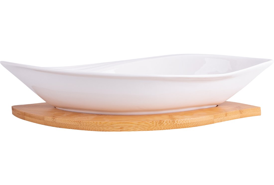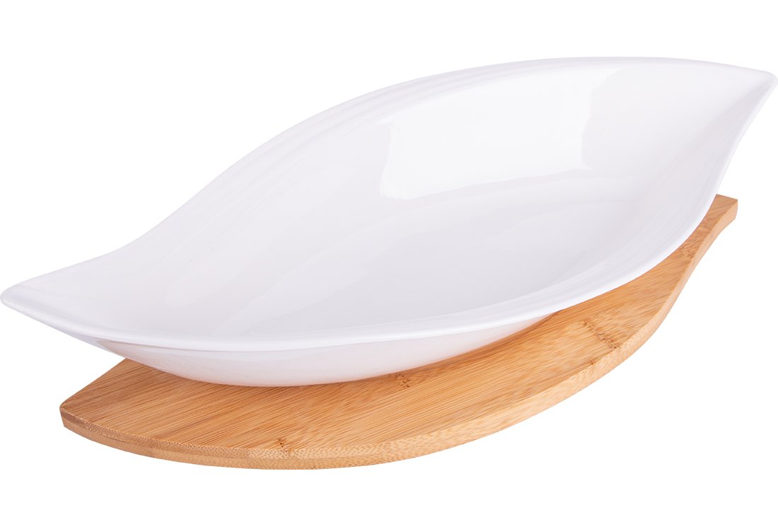 Livraison: 1x Assiette de service pour kayak en porcelaine de bambou Duygu 2 pièces | Blanc | Dg-8010