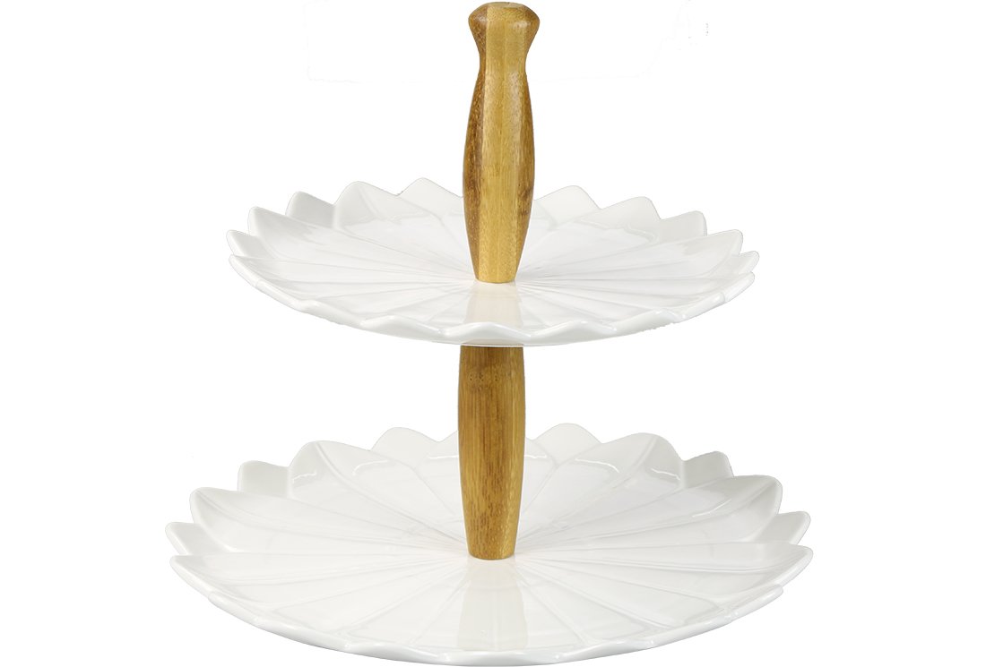 Livraison et dimensions: 1 x étagère Duygu Bambu 2 couches en porcelaine | Dg-6211