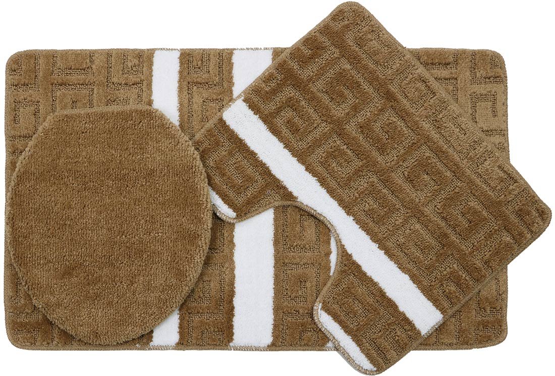 Livraison: 1x ensemble de tapis de bain 3 pièces Duygu Labyrinth Pattern | Brown | Ban-0015