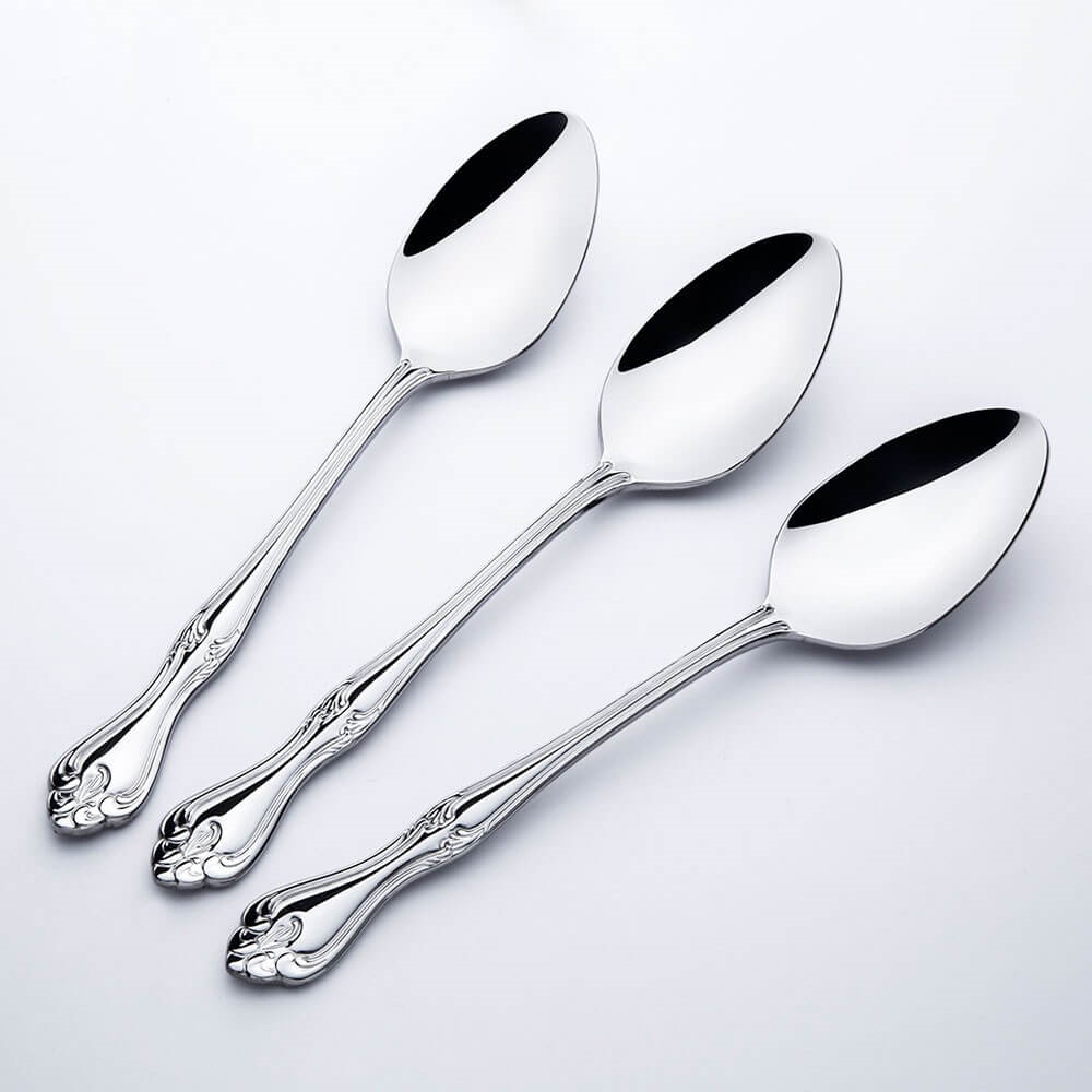 Nous avons interprété l'acier de la plus haute qualité dans les ensembles de couverts Lalezar avec une finition parfaite. Il ajoutera de la valeur à vos tables avec son acier brillant de type miroir et son style classique.