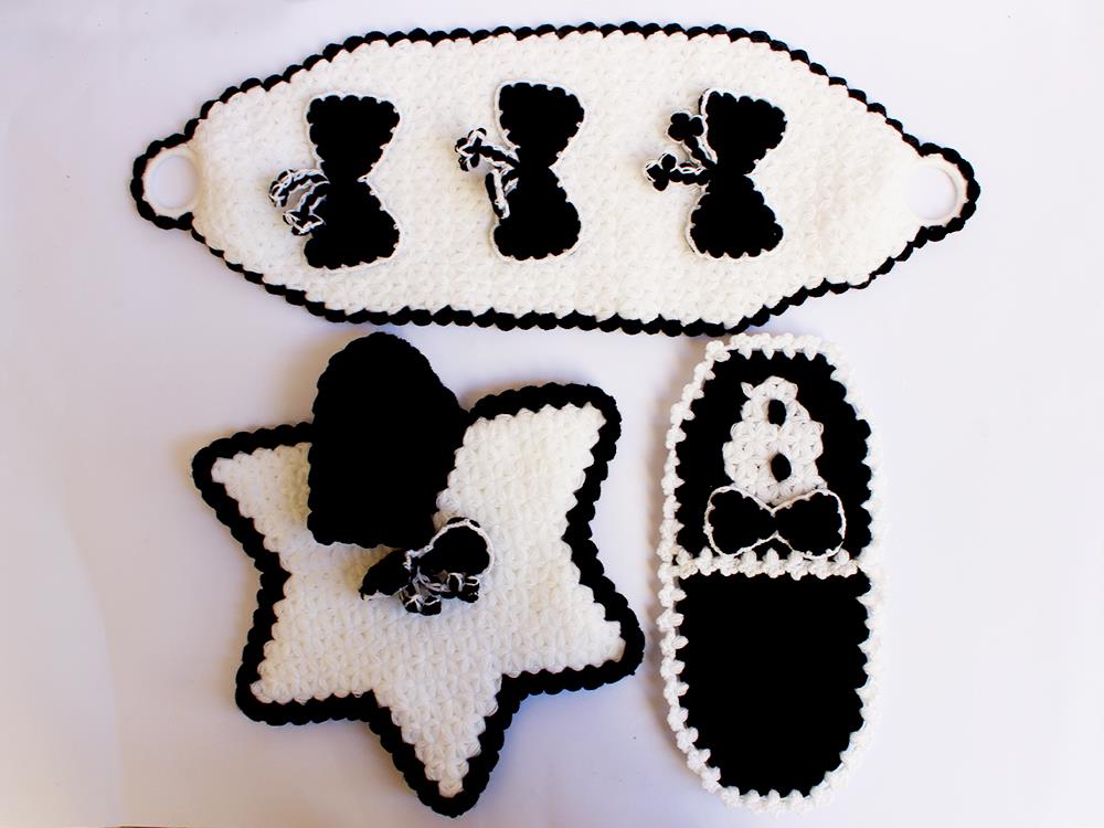 Informations sur le produit "Ensemble de 3 marié noir et blanc fabriqué à la main"