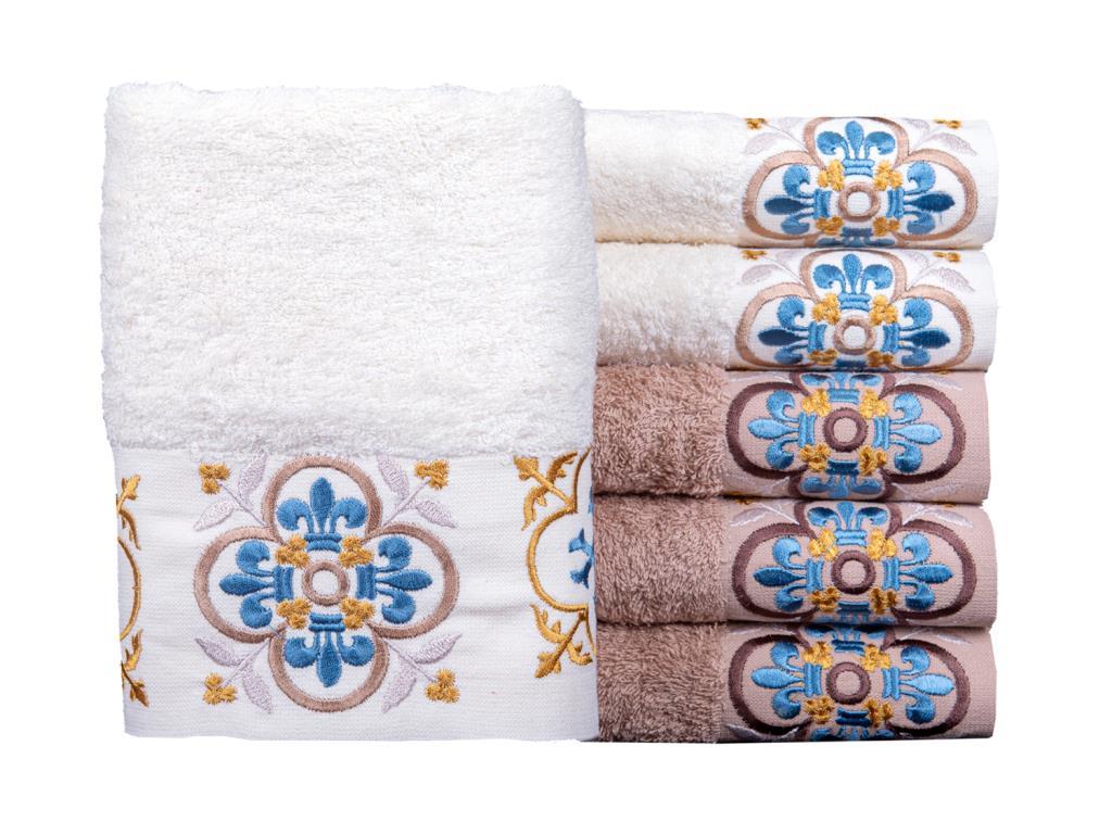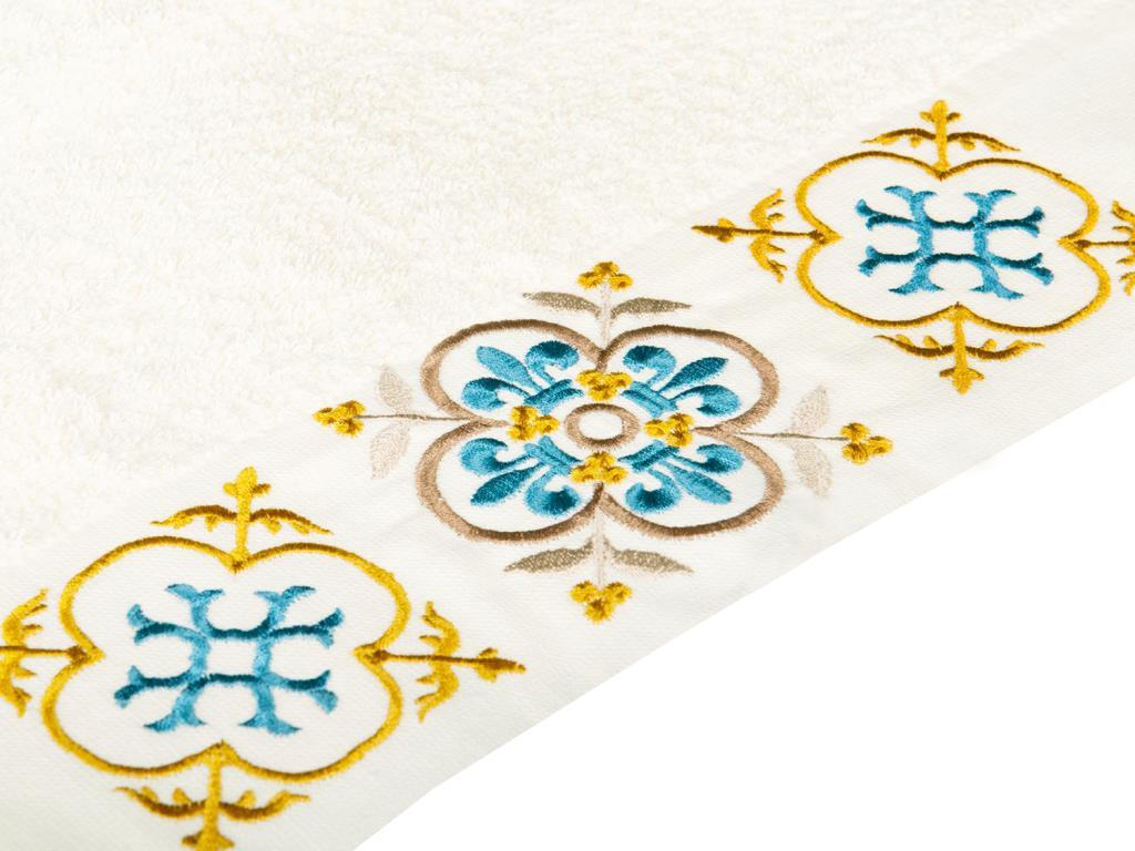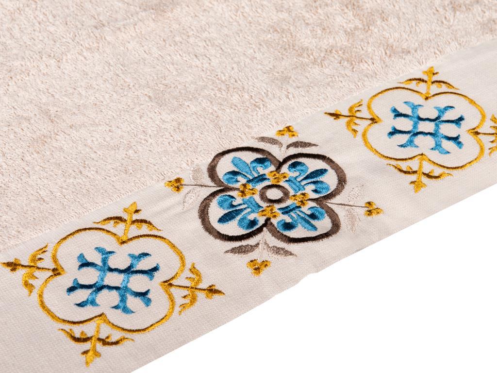 Un motif élégant a été créé avec de la broderie sur la serviette.