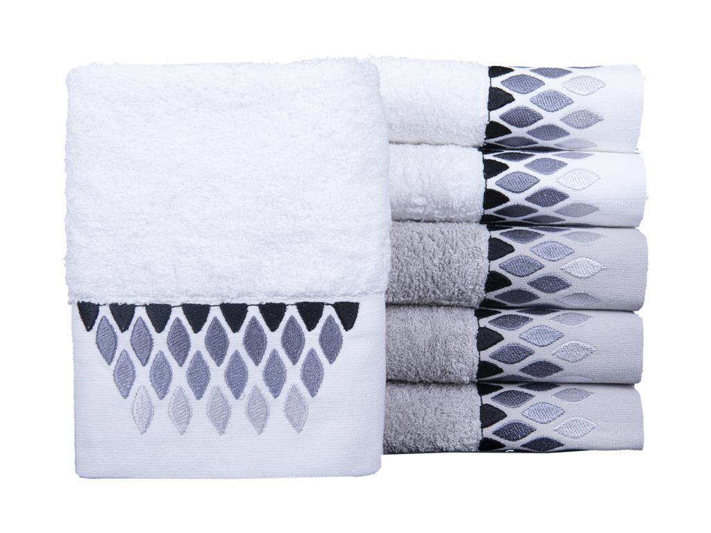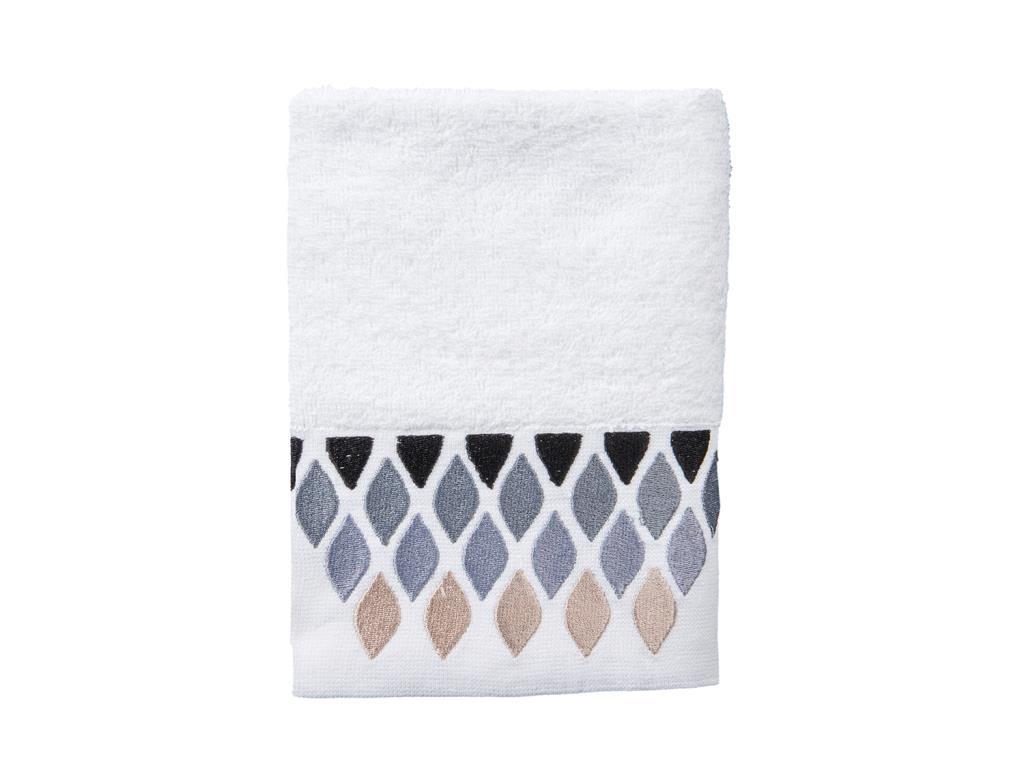 Un motif élégant a été créé avec de la broderie sur la serviette.
